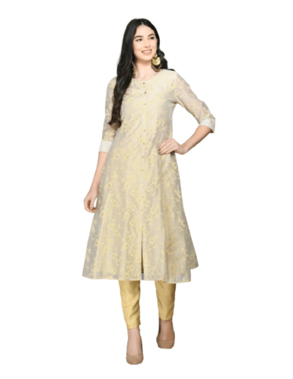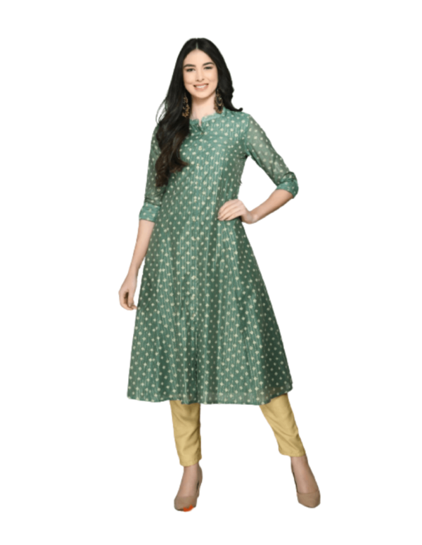 Women Self Design Cotton Blend A-line Kurta (Green)