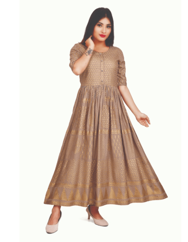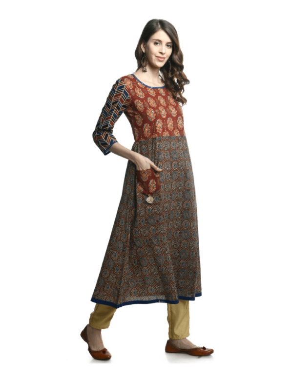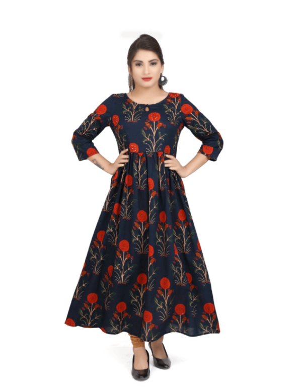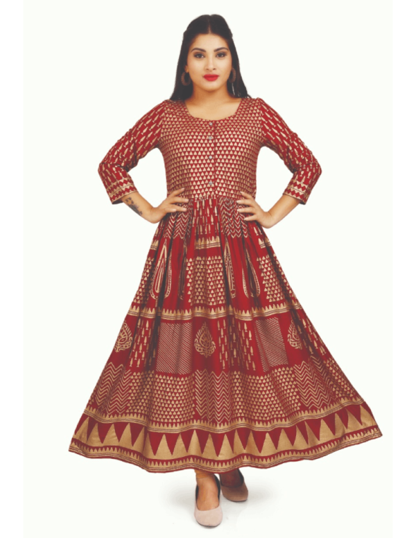 Women Printed Cotton Blend Anarkali Kurta (Maroon)