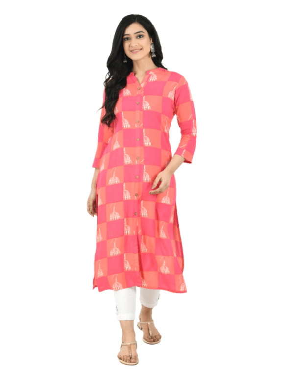 Women Printed Viscose Rayon Straight Kurta (Pink)