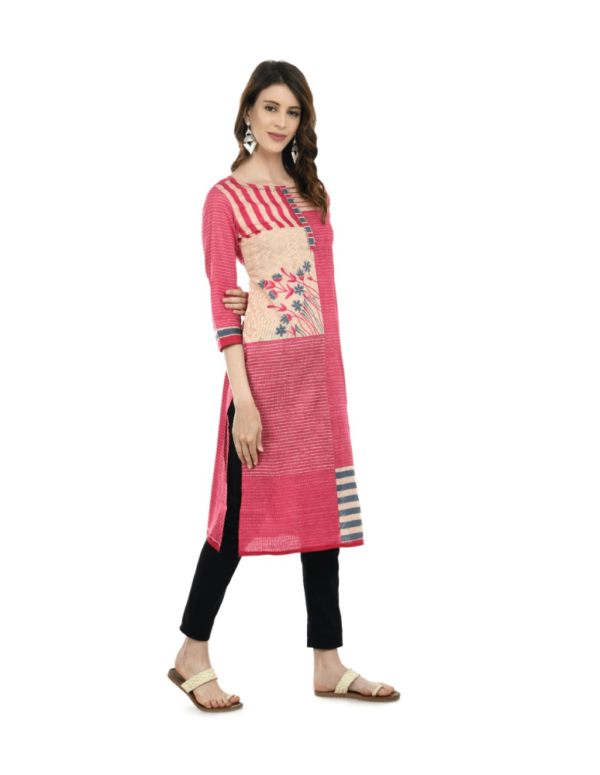 Women Printed Pure Cotton Straight Kurta (Pink)