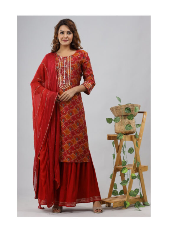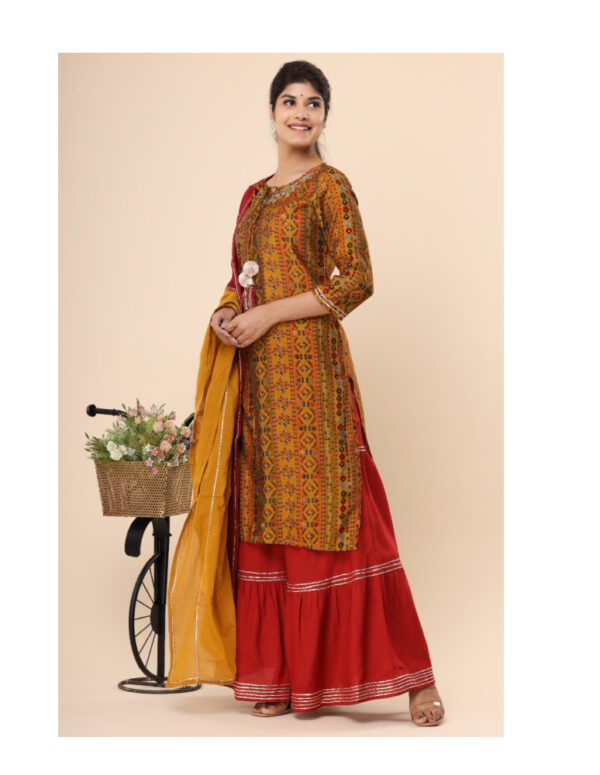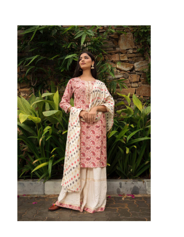 Pink And Cream Color Kurti Sharara Set With Dupatta