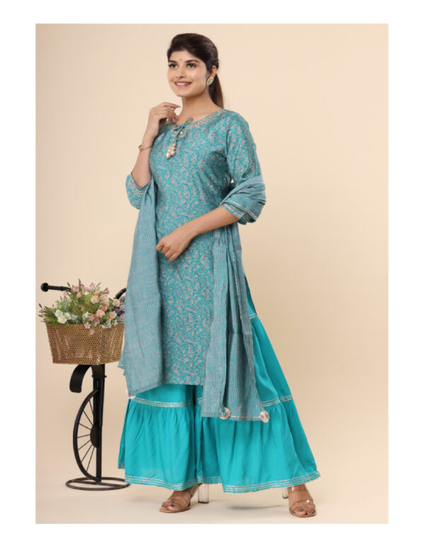 Kurta Sharara Set With Dupatta (Sky Blue)