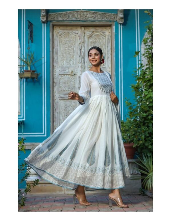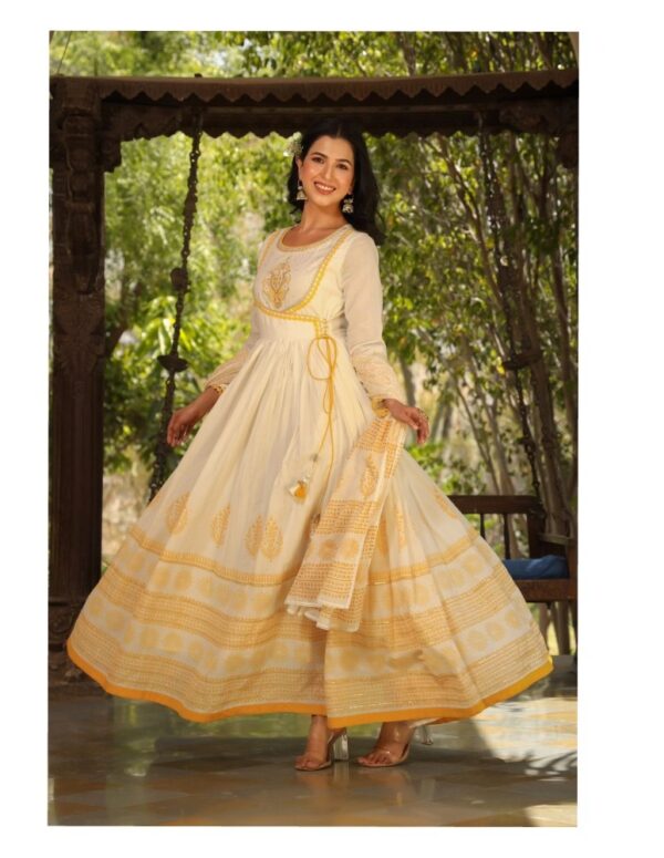 Lemon Yellow Block Printed Anarakali With Dupatta