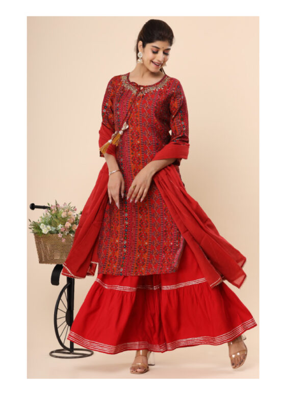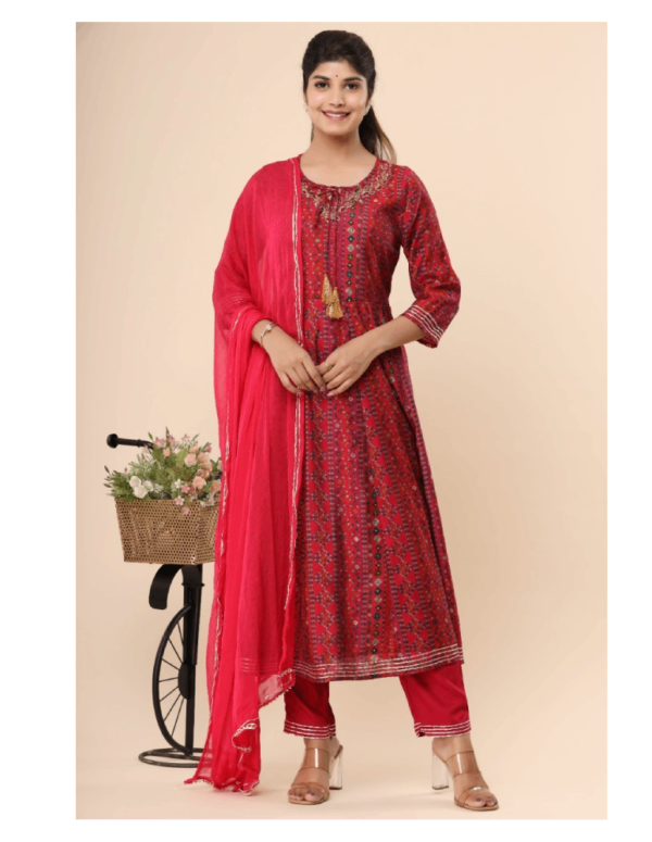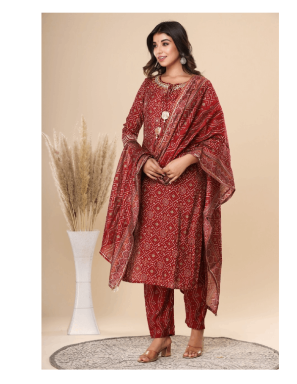 Women Maroon Embroidered Straight Kurta & Pant With Duptta