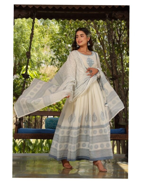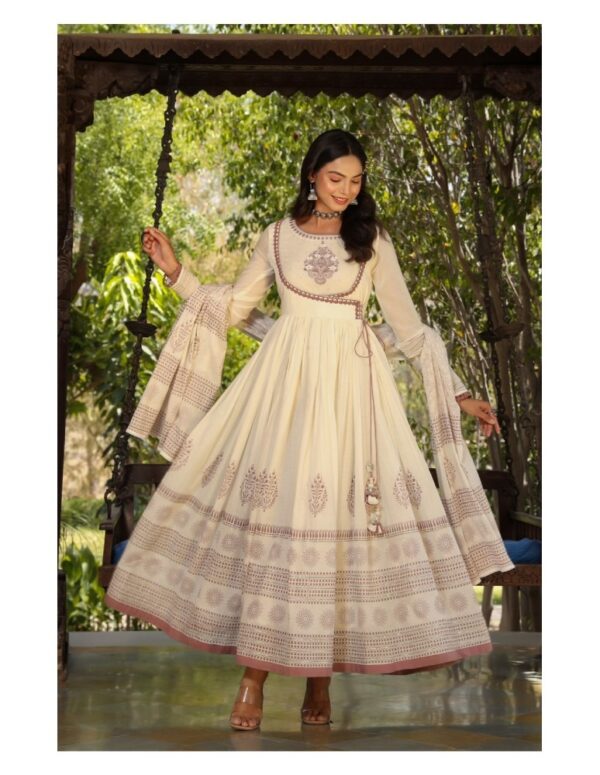Women Gown and Dupatta Set Pure Cotton ( Purple)