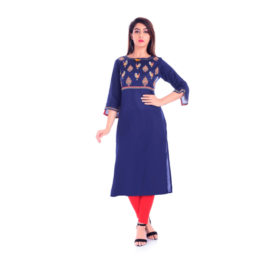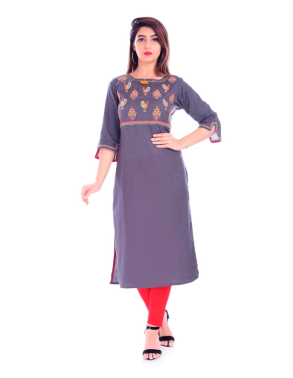 Women Embroidered Cotton Blend Straight Kurta (Grey)