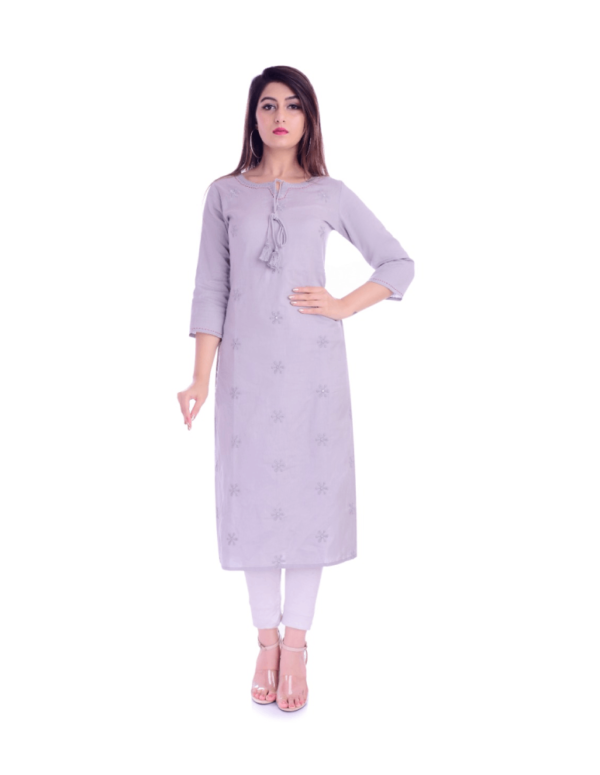 Women Embroidered Cotton Blend Straight Kurta (Purple)