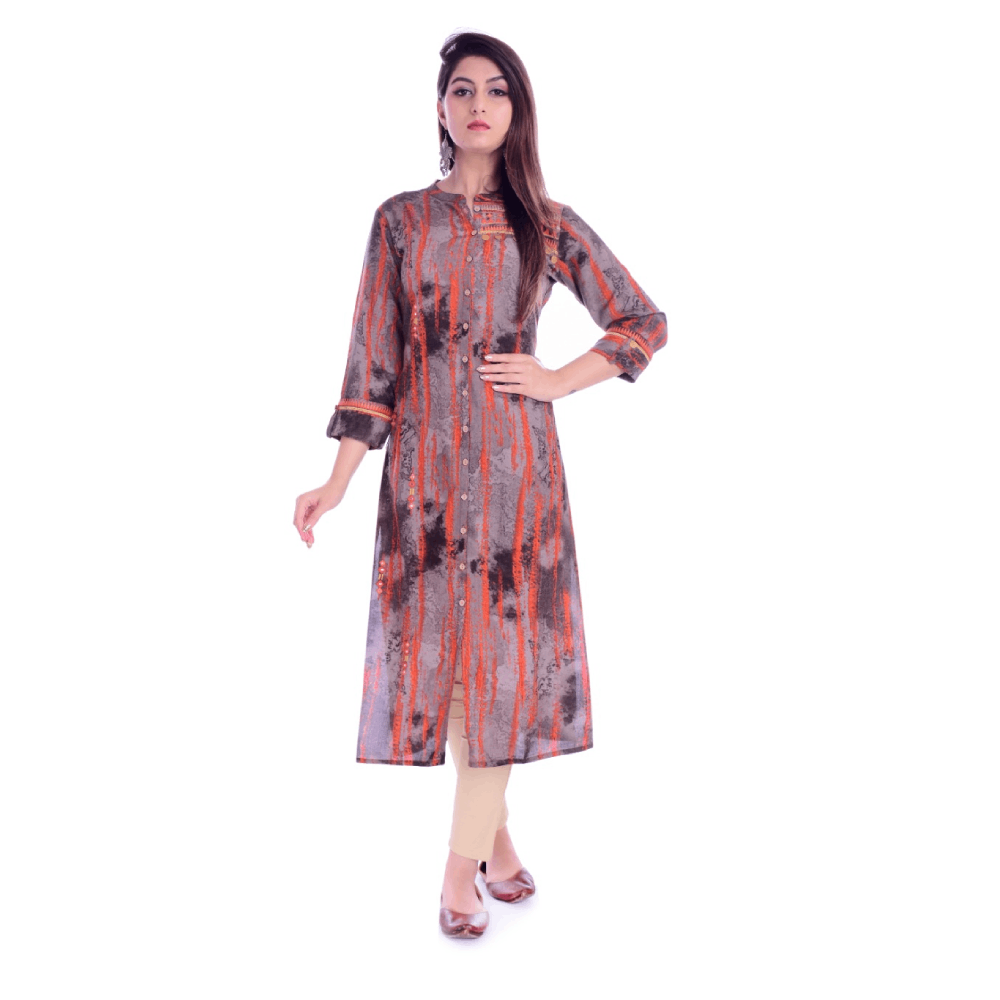 Women Printed Viscose Rayon Straight Kurta (Pink)