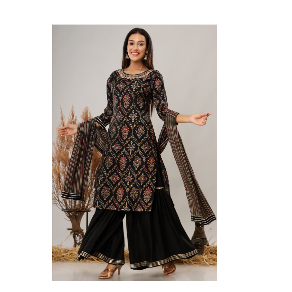 Chanderi Ink Black Kurta Sharara With Dupatta