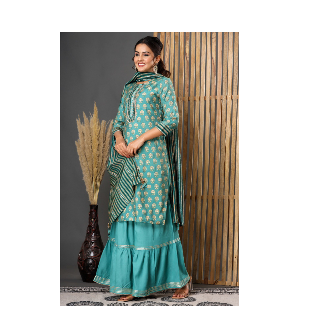 Chanderi Ocean Blue Kurta Sharara With Dupatta