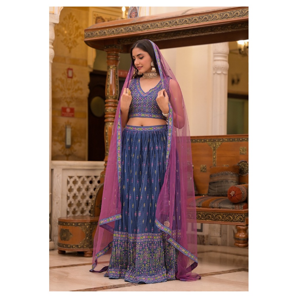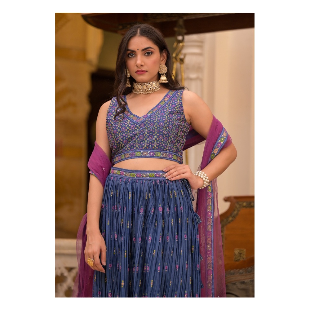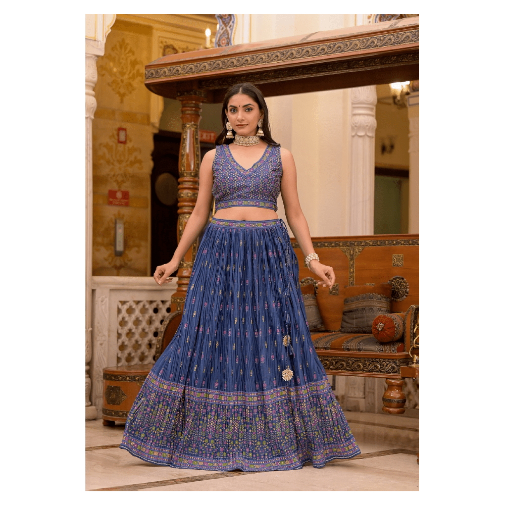 Give your festive look a refreshing spin with this Blue frilled crop top.