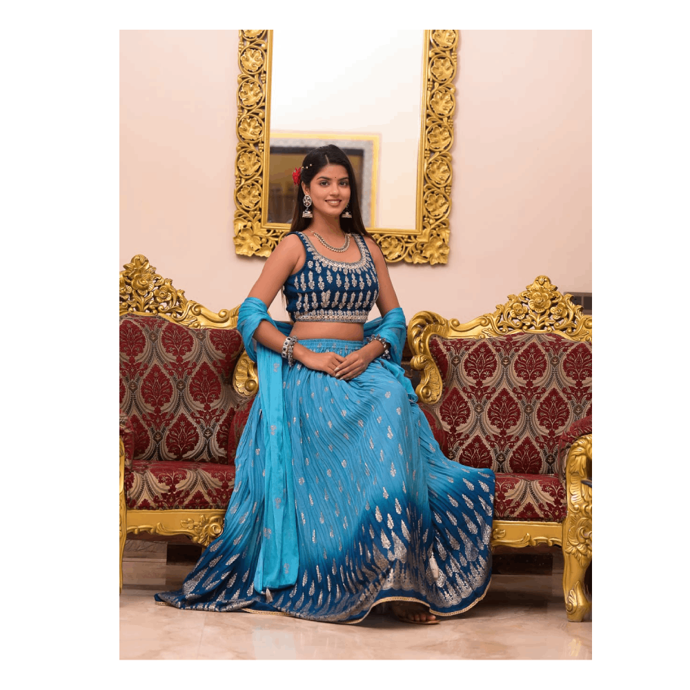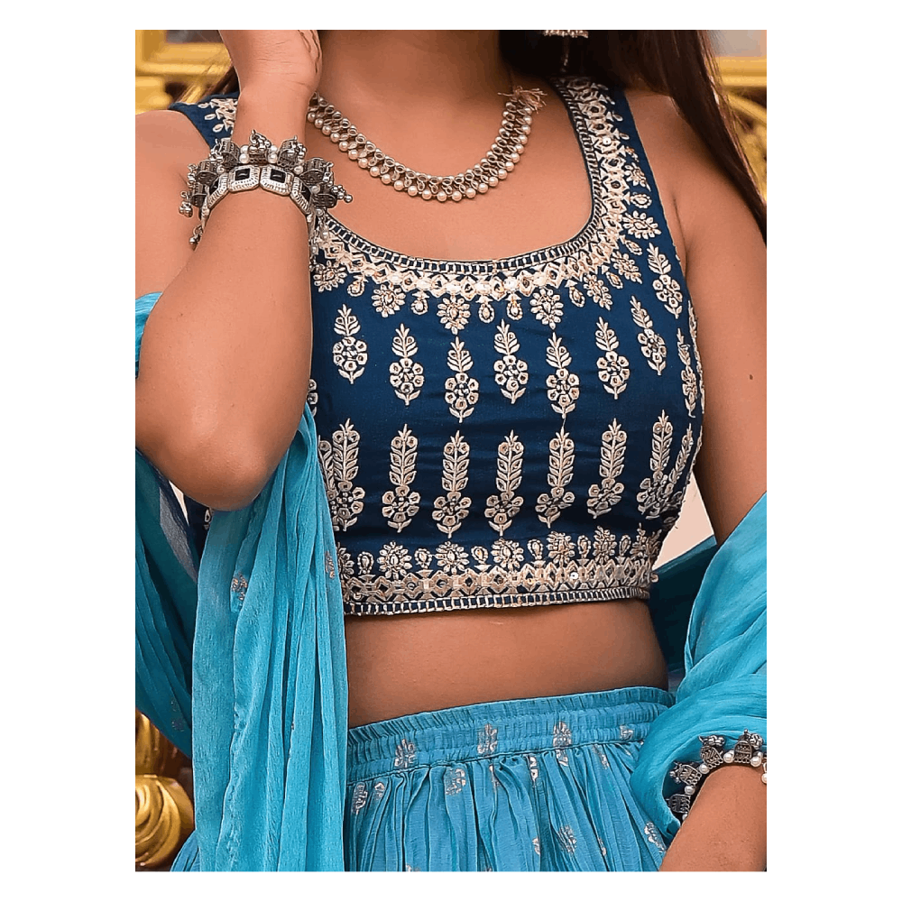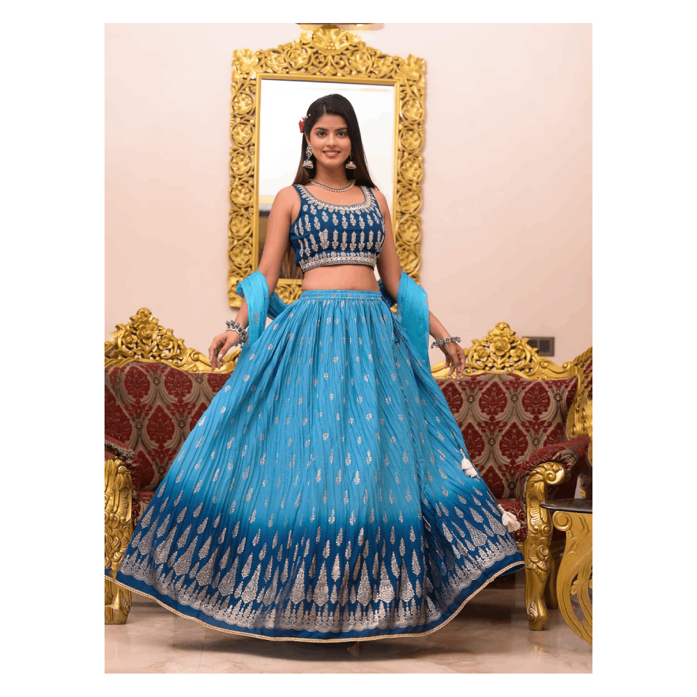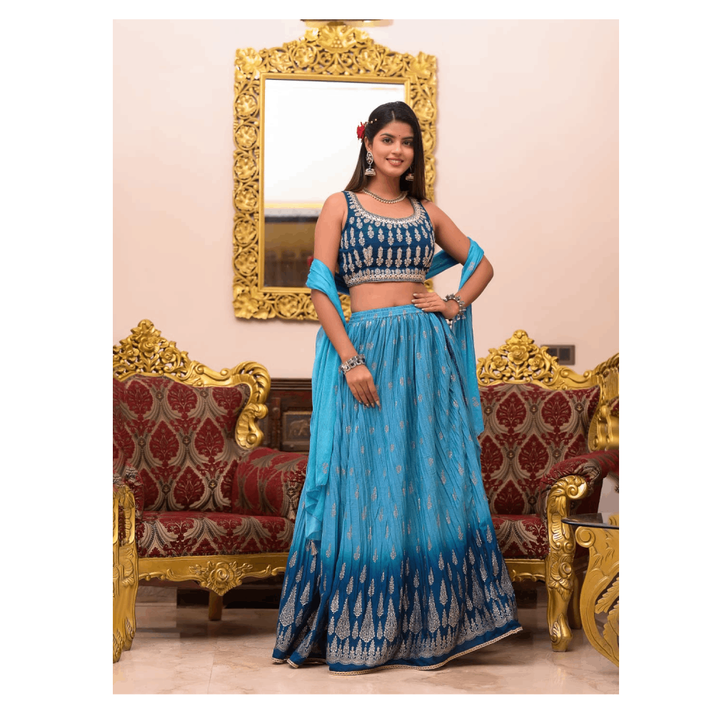 Give your festive look a refreshing spin with this sky blue rilled crop top.