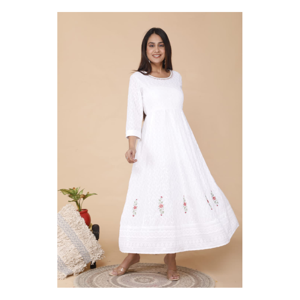Women Printed Cotton Blend Anarkali Kurta (Red, White)