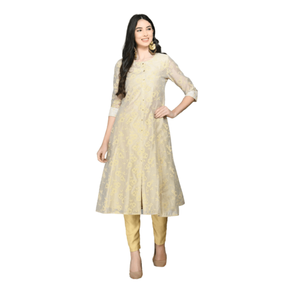 Women Self Design Cotton Blend A-line Kurta (Green)