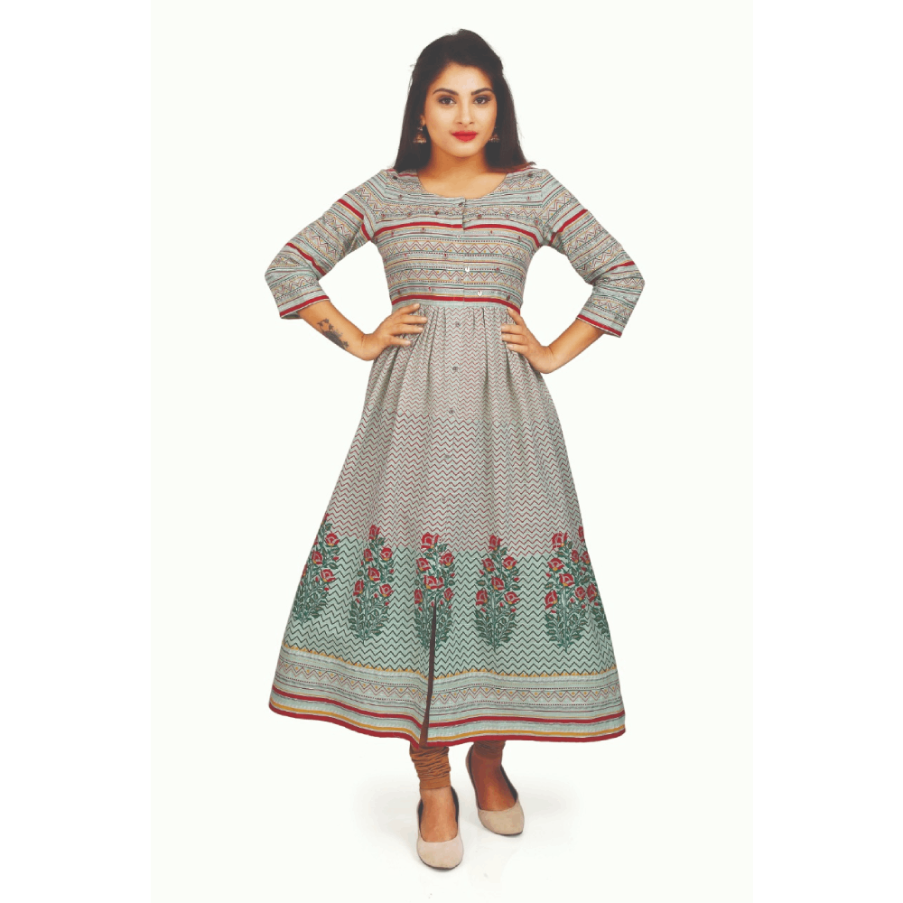 Women Self Design Cotton Blend A-line Kurta (Green)