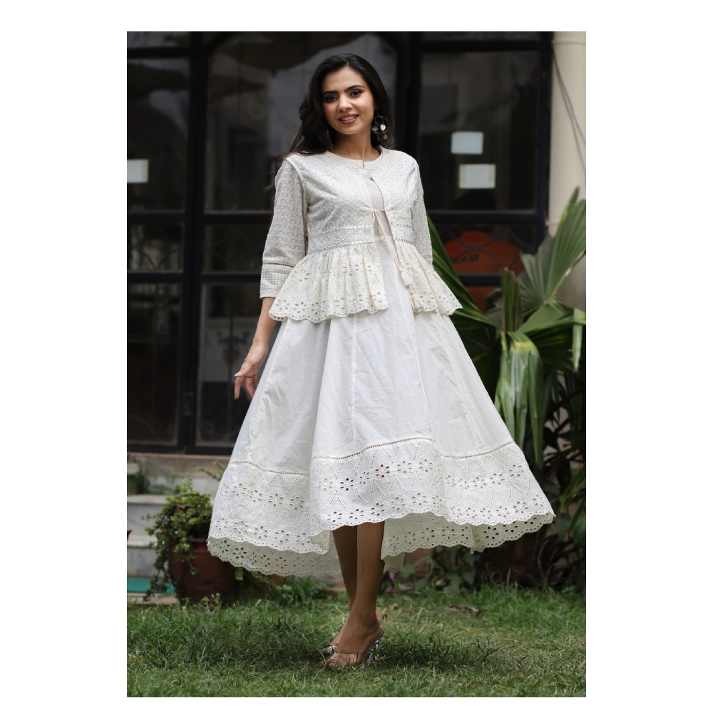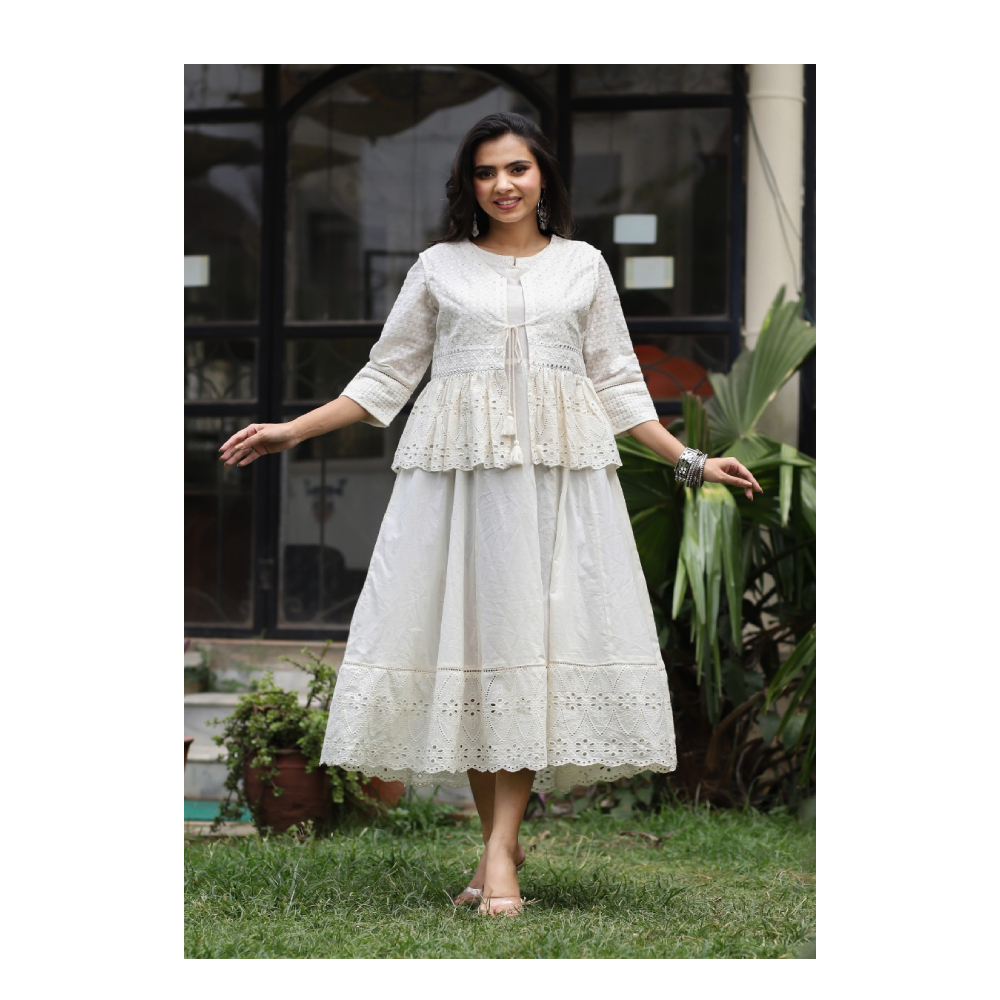 Women Printed Cotton Blend Anarkali Kurta (Red, White)