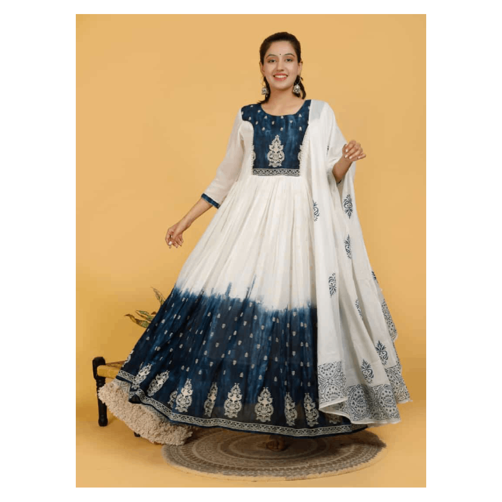 Kurta Dupatta Set (Ivory And Navy Shaded)