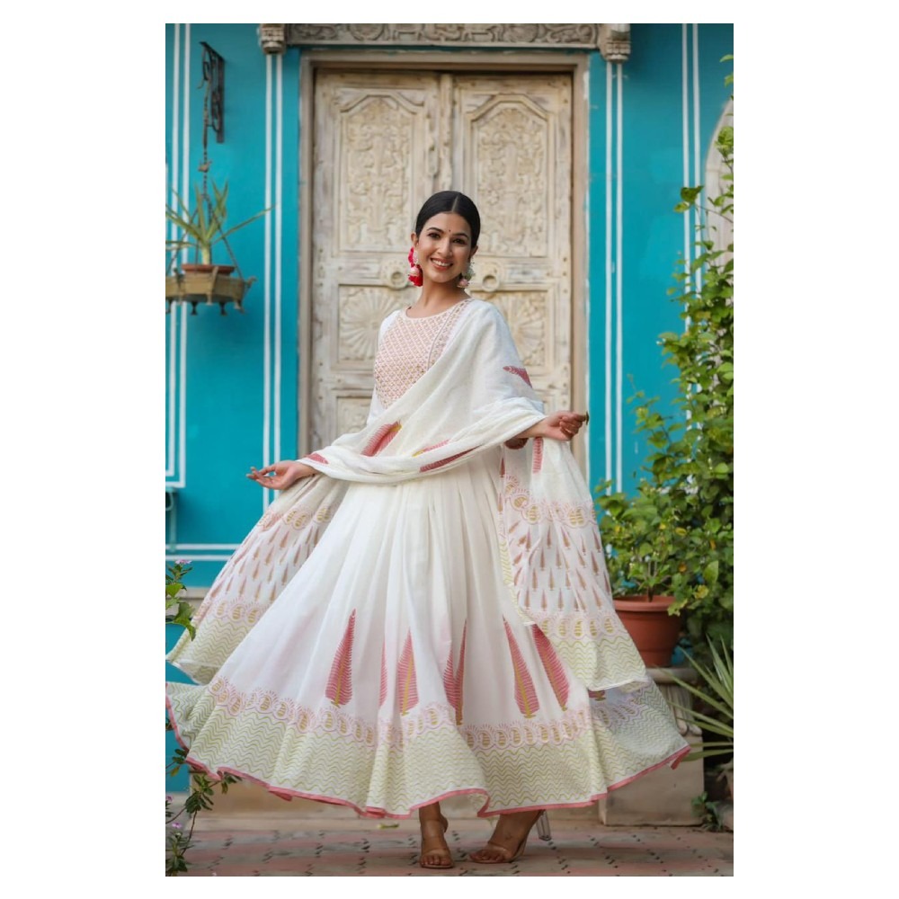 Women Gown and Dupatta Set Pure Cotton ( Purple)