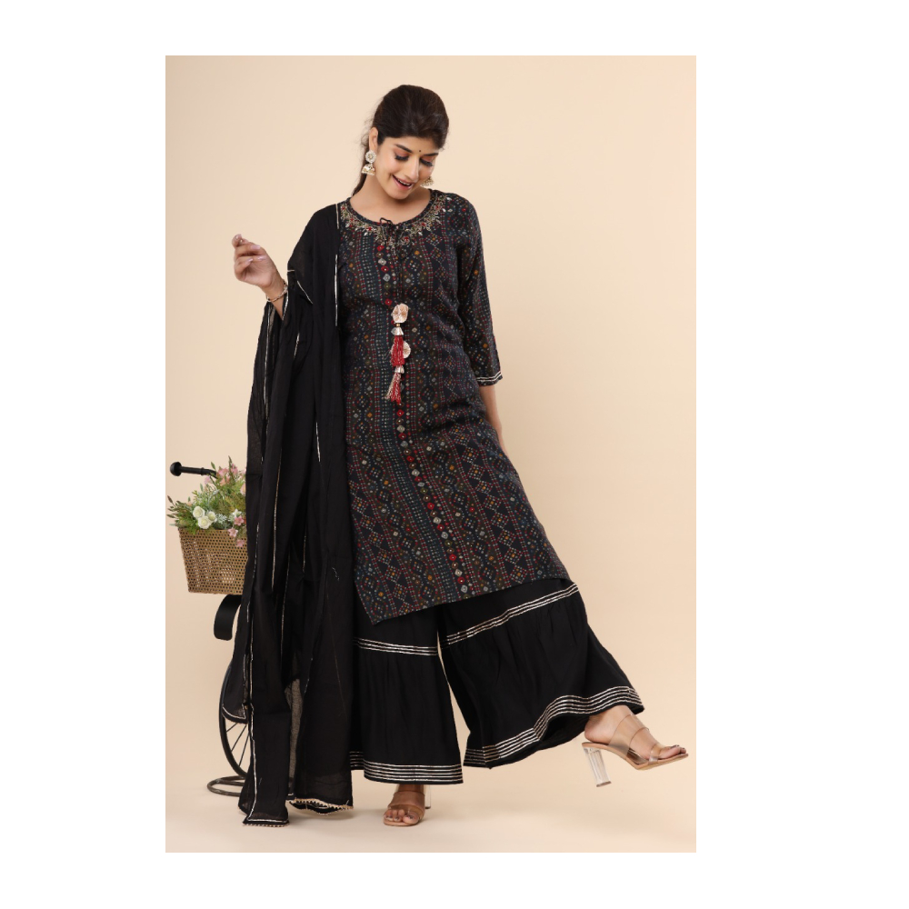 Denim Blue With Rose Wood Pink Kurta Sharara With Dupatta
