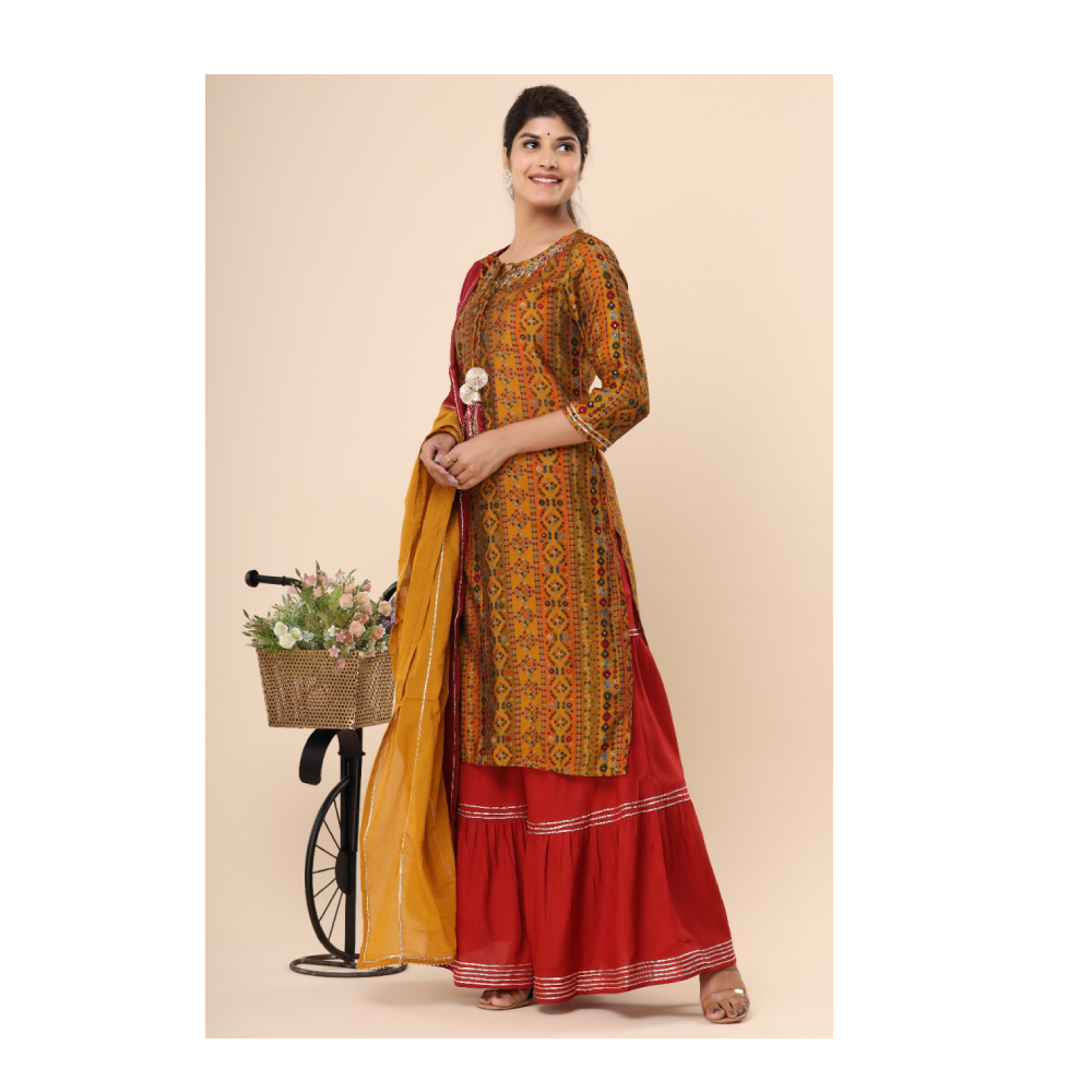 Kurta Sharara Set With Dupatta ( Mustard)