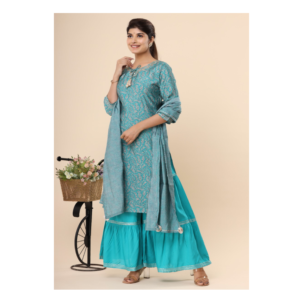Kurta Sharara Set With Dupatta (Sky Blue)