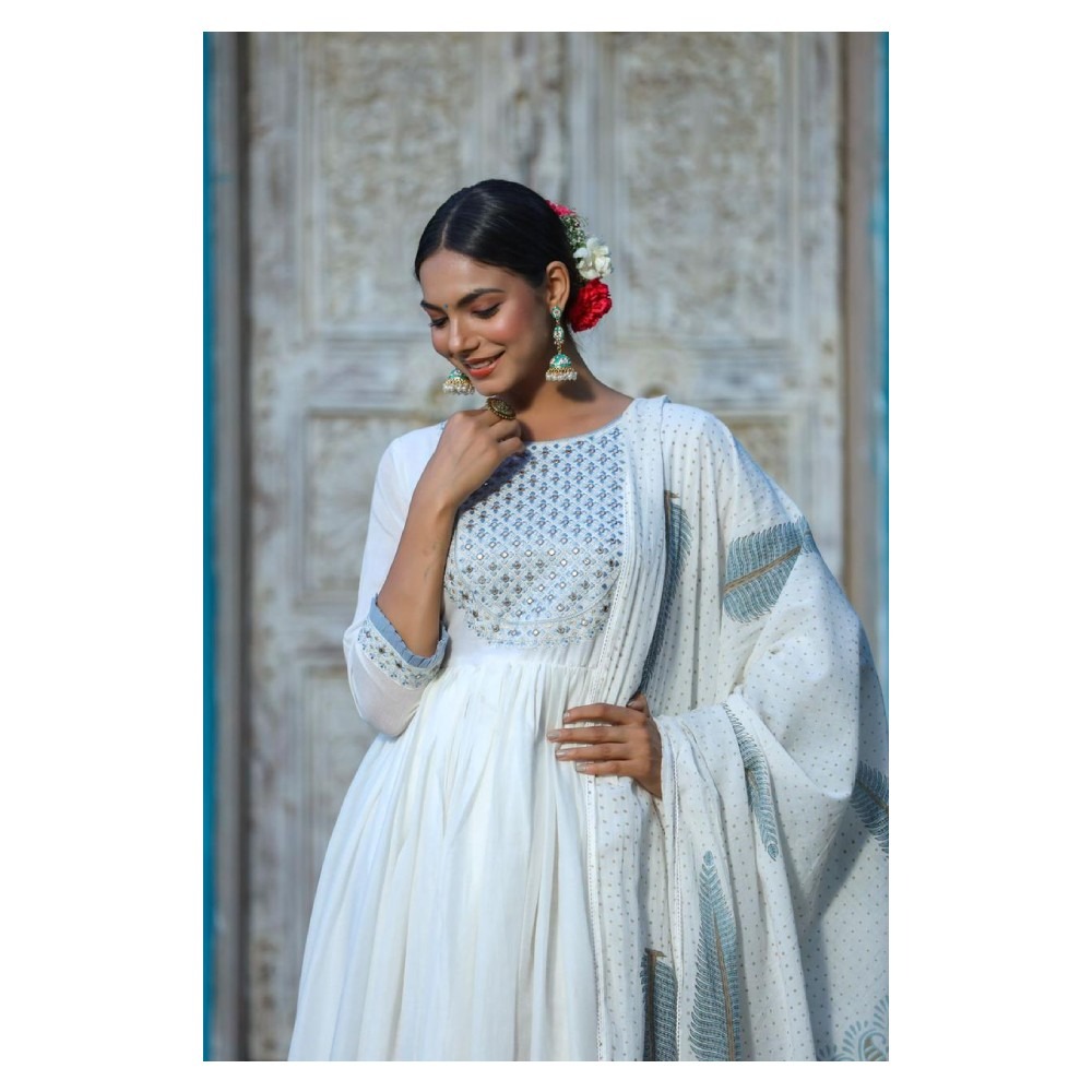 Embellished Round Neck Anarkali Kurta with Dupatta
