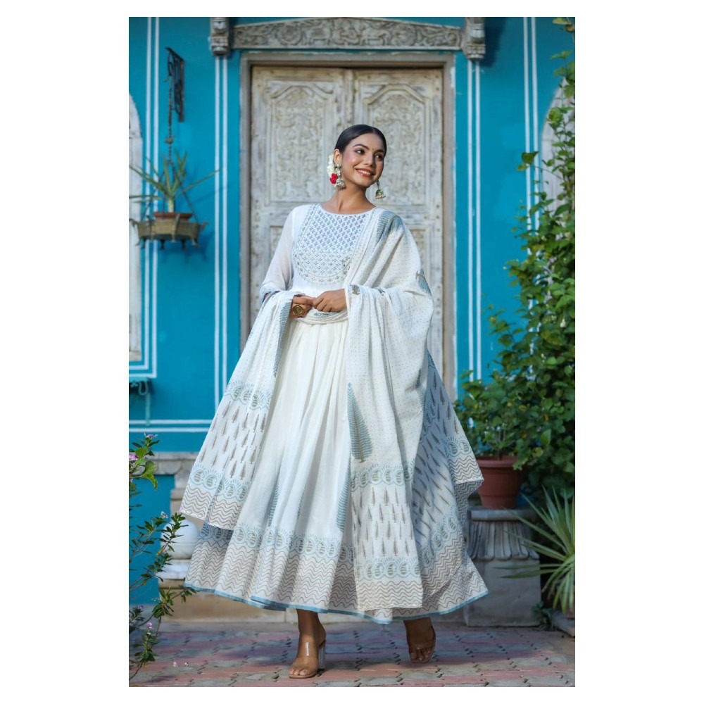 Women Gown and Dupatta Set Pure Cotton