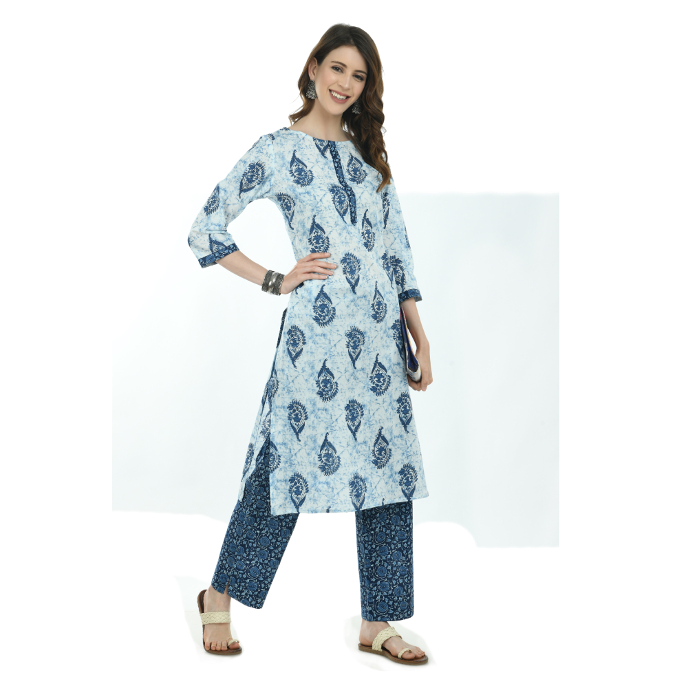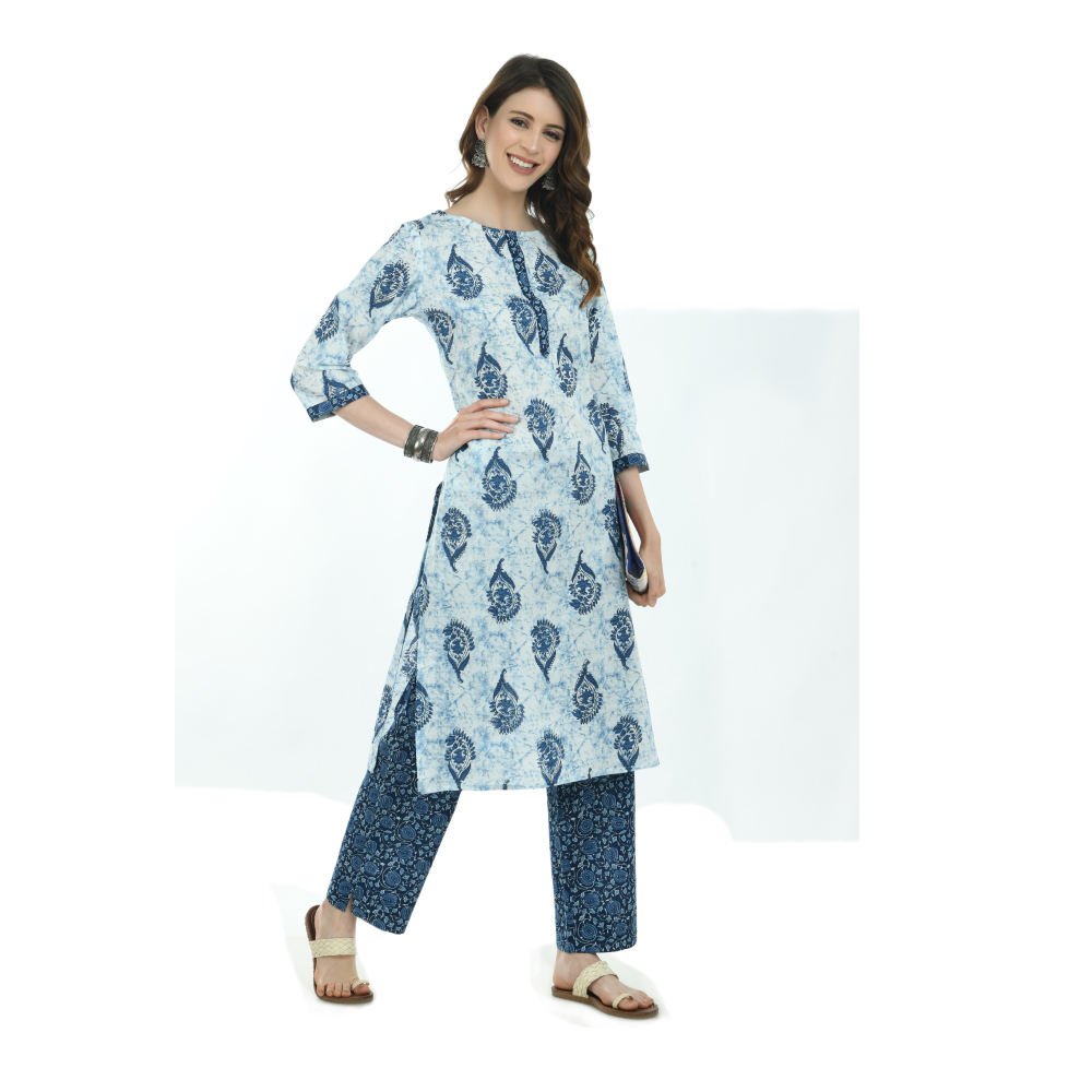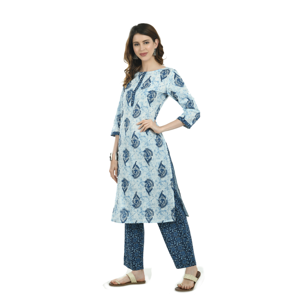 Women Kurta and Pant Set Pure Cotton (Blue)