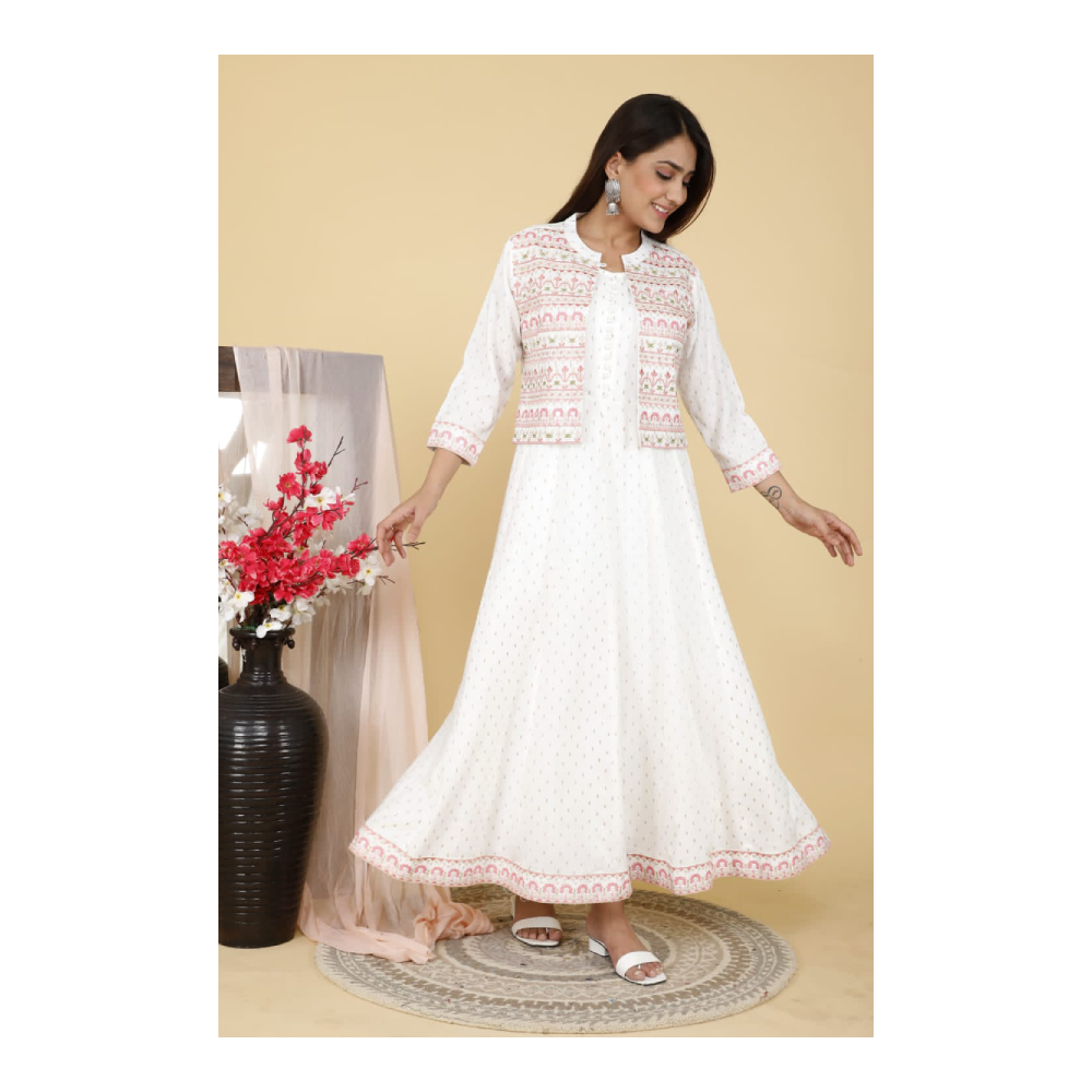 Layered Dress Anarkali Kurta ( White, Pink)