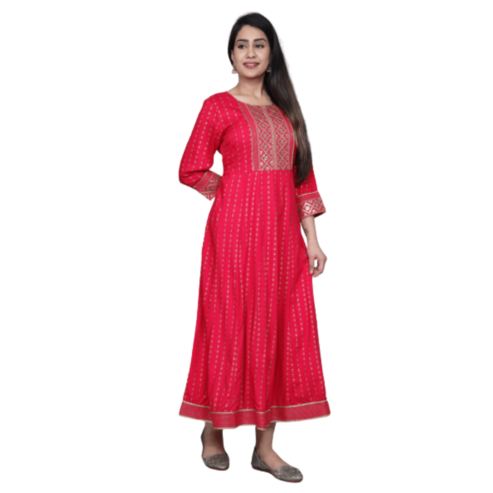 Rayon Blend Stitched Anarkali Gown (Pink)
