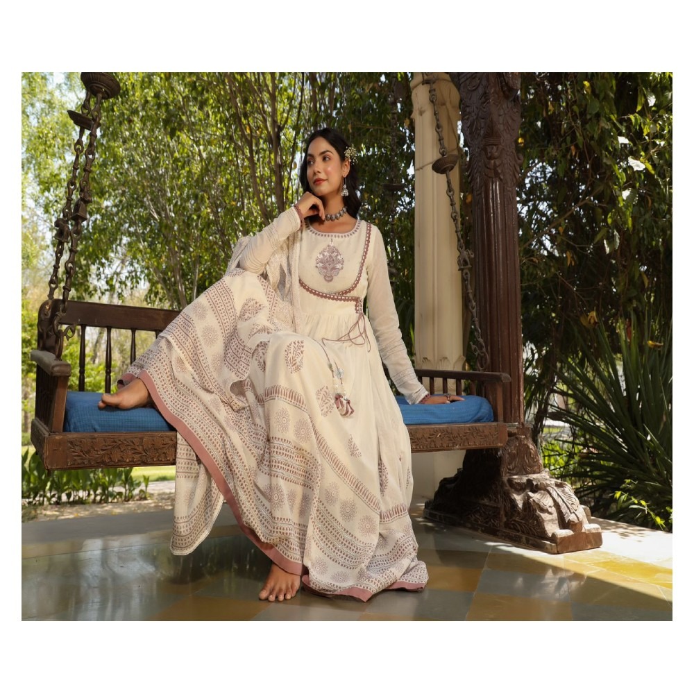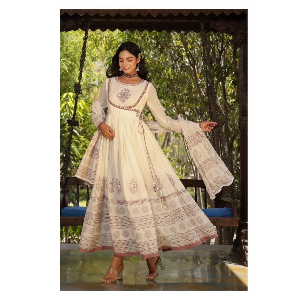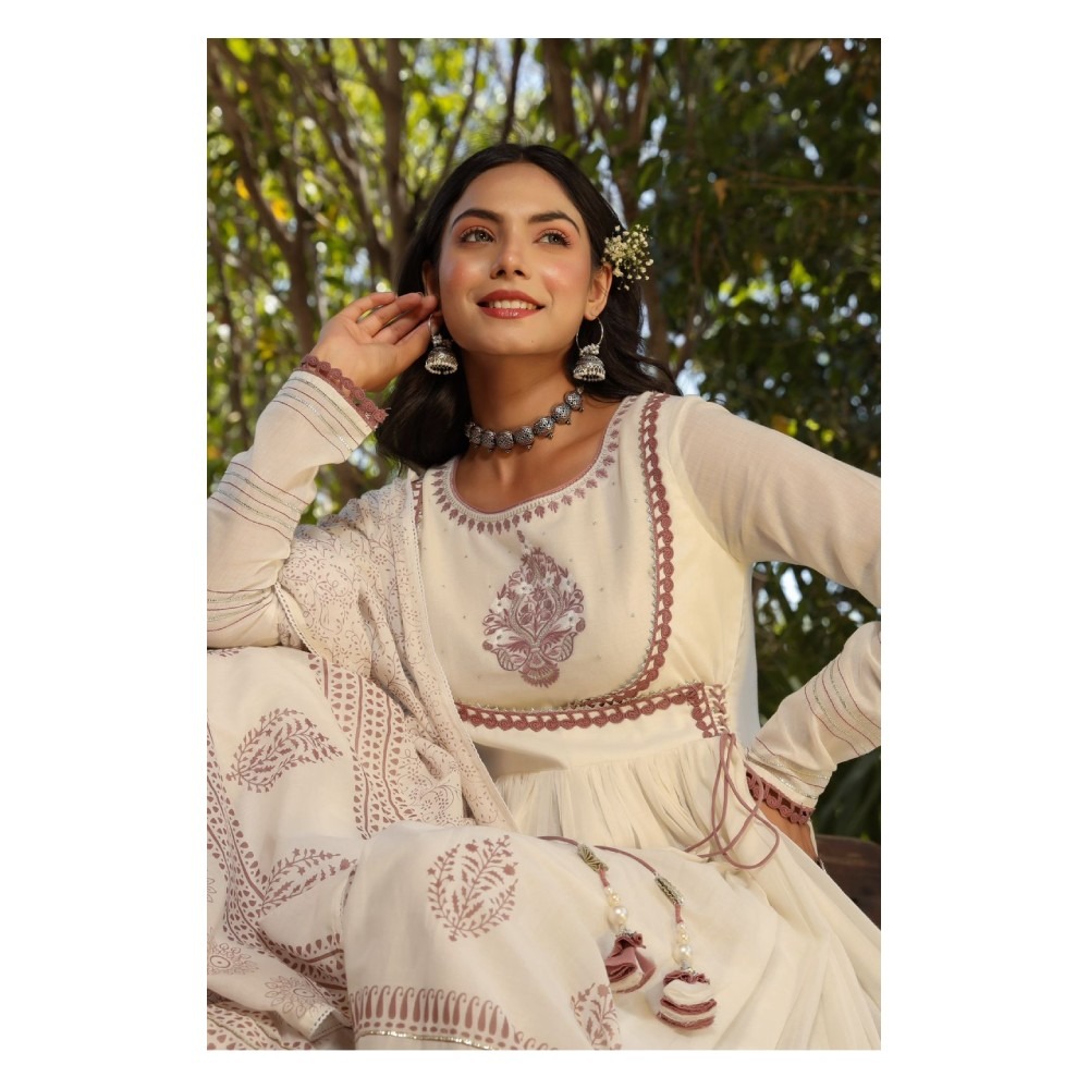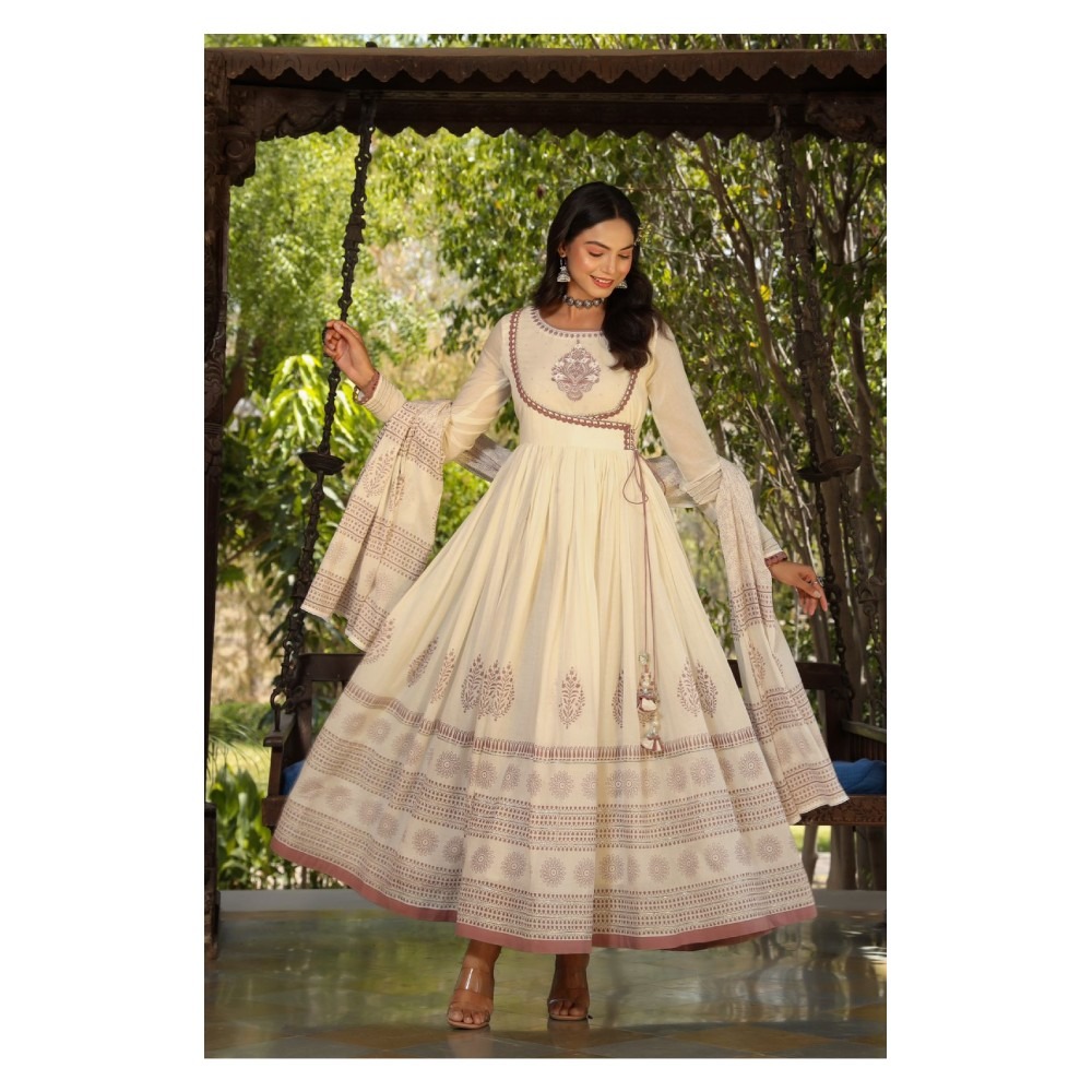 Embellished Round Neck Anarkali Kurta with Dupatta