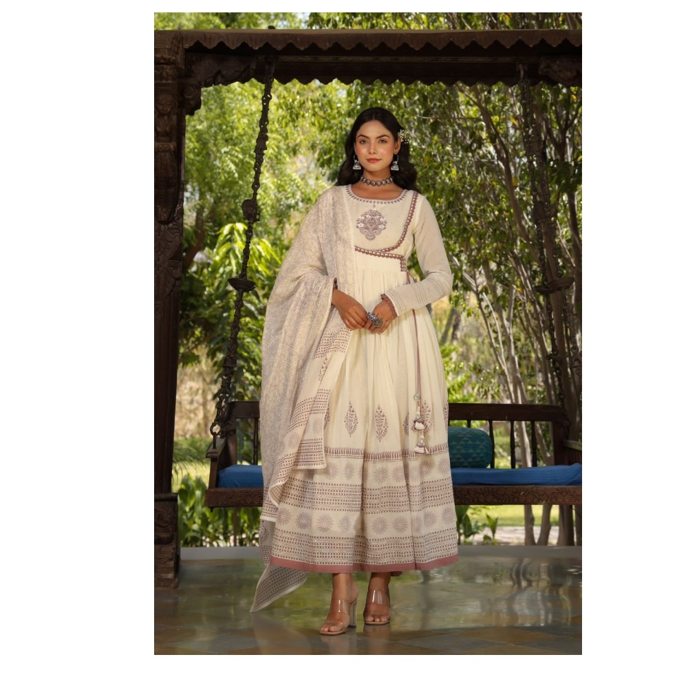 Women Gown and Dupatta Set Pure Cotton ( Purple)