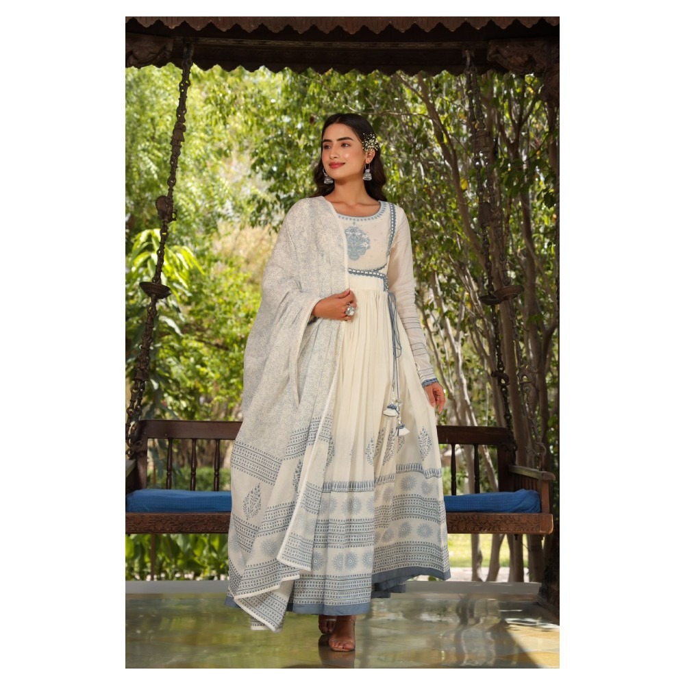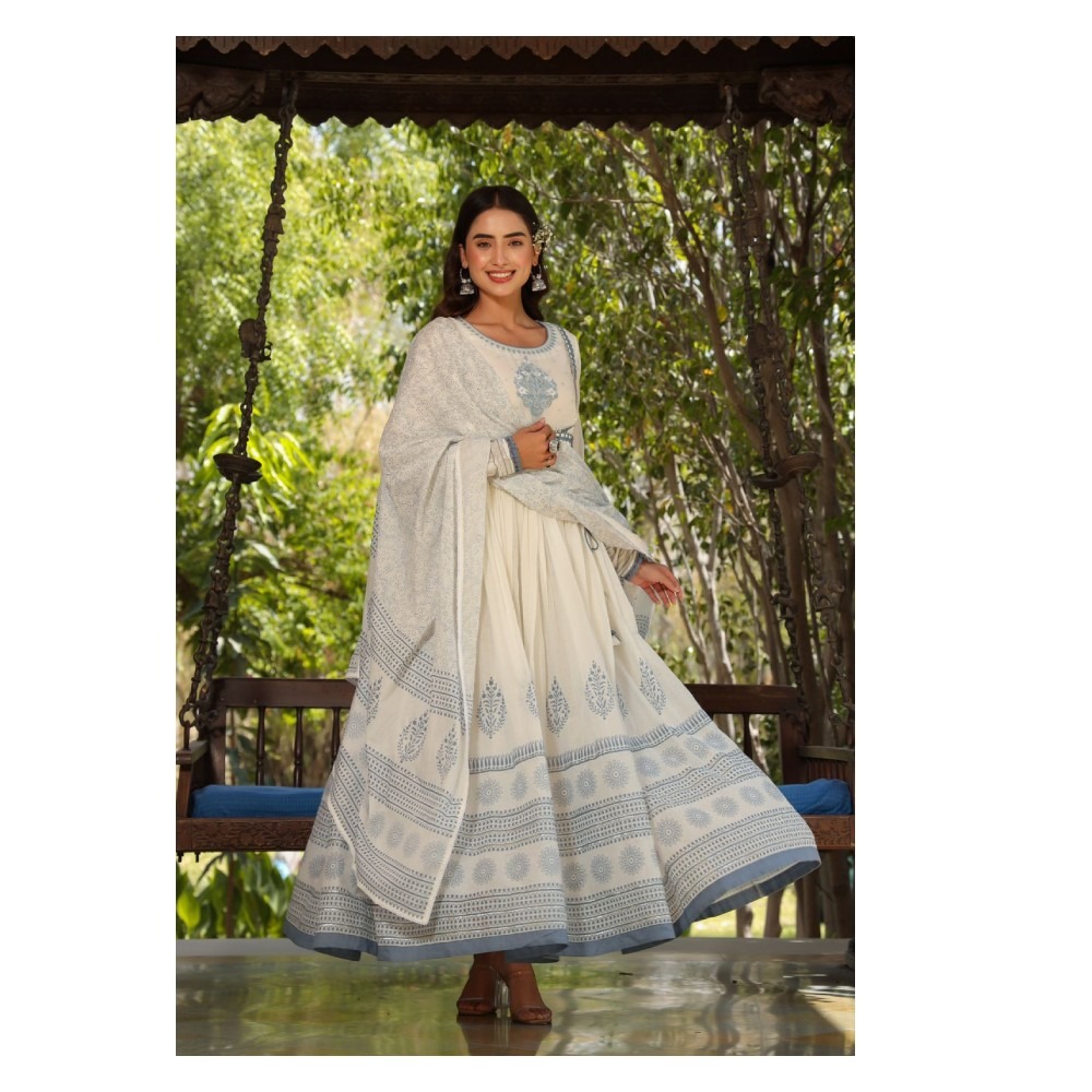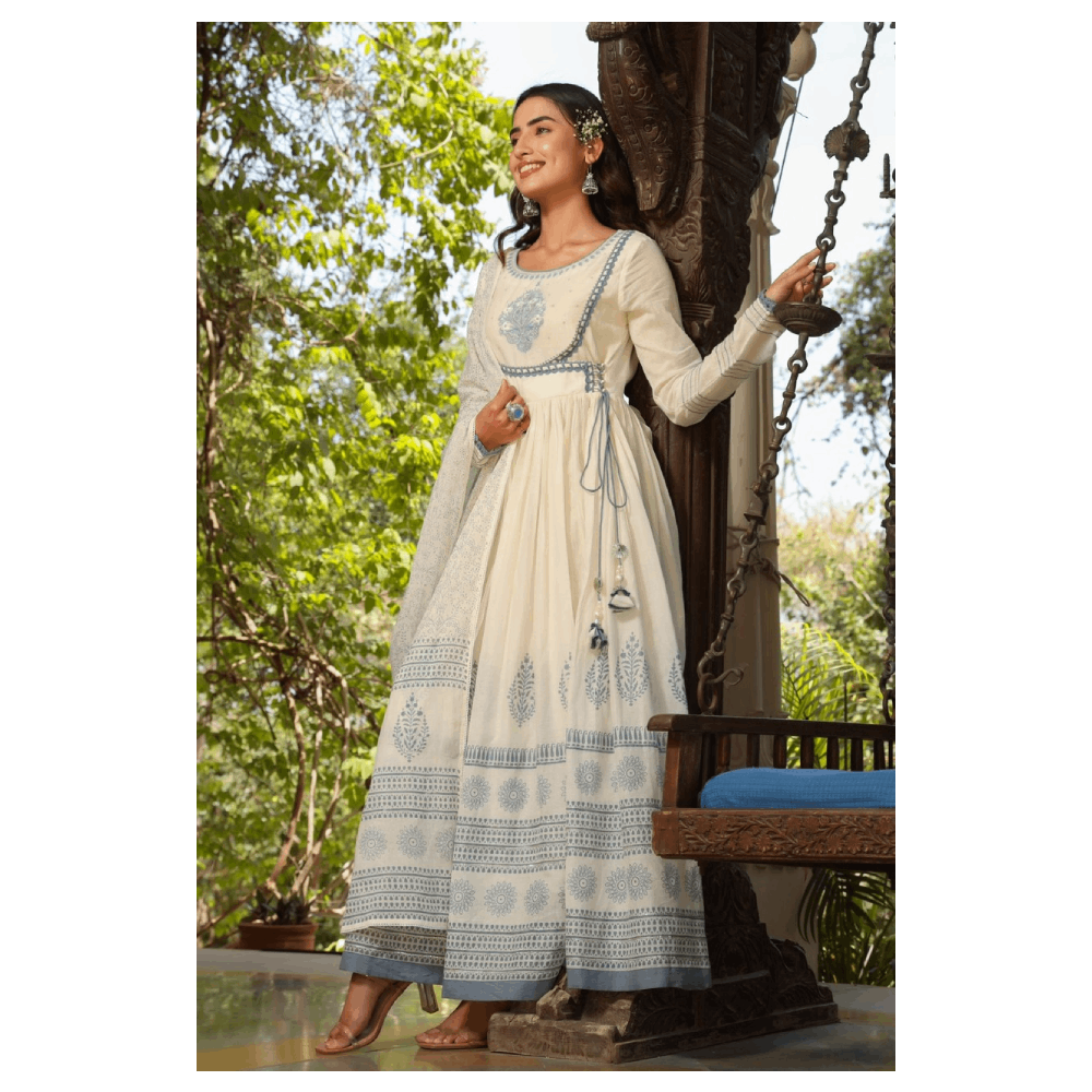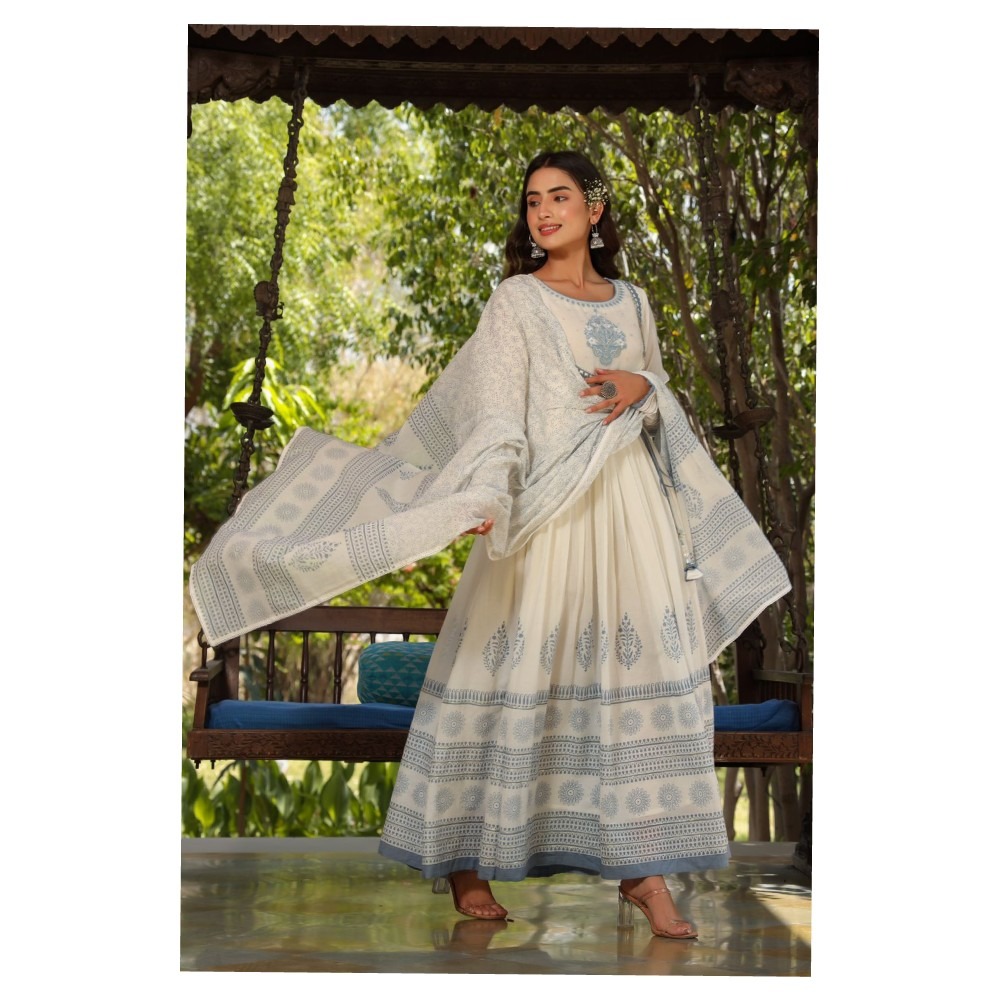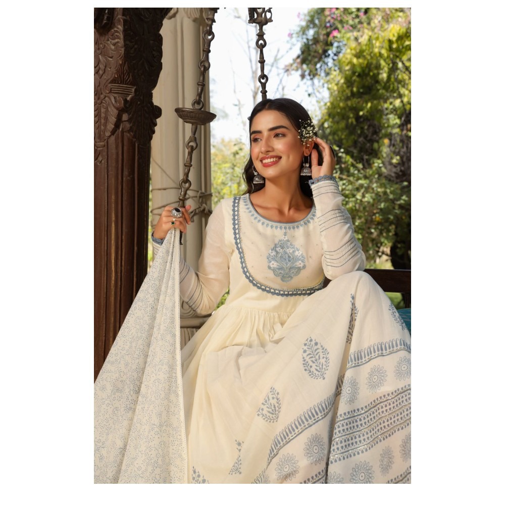 Embellished Round Neck Anarkali Kurta with Dupatta