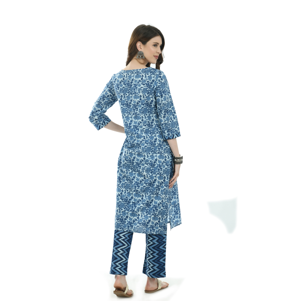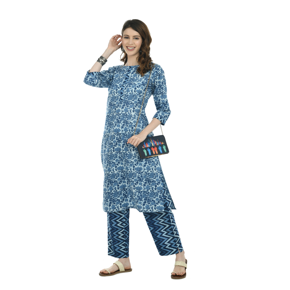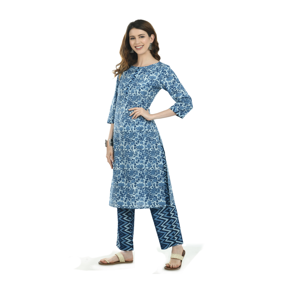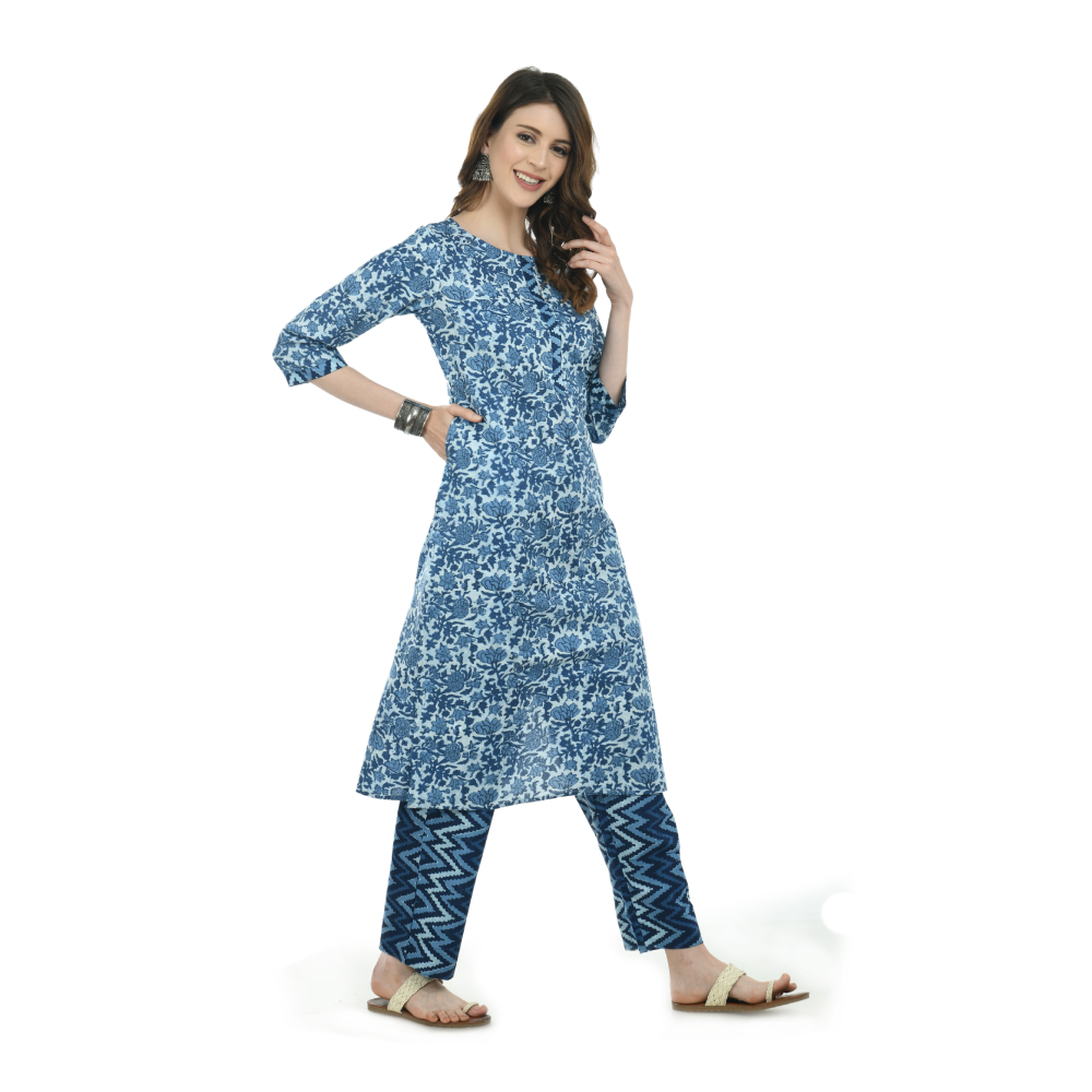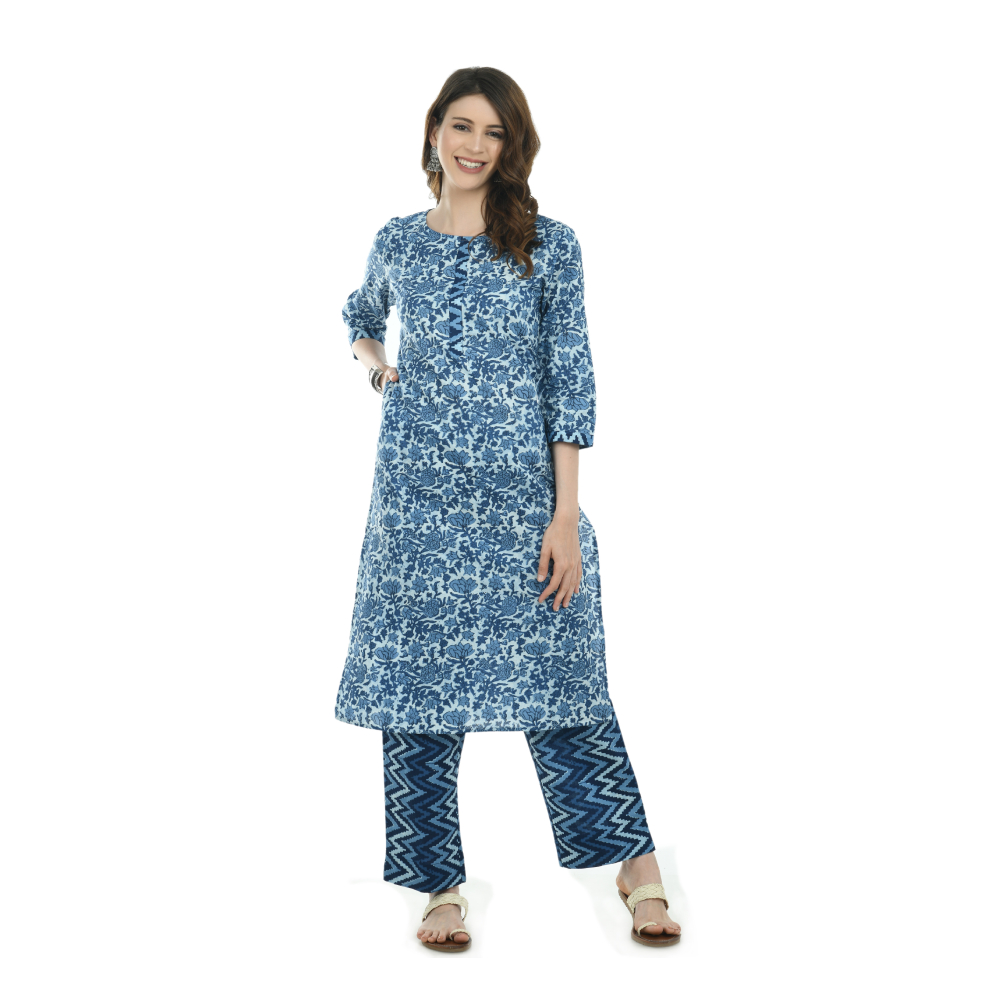 Women Kurta and Pant Set Pure Cotton (Blue)
