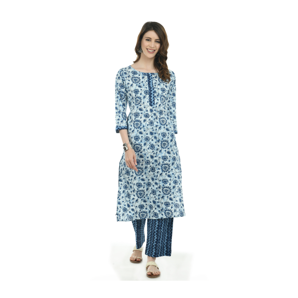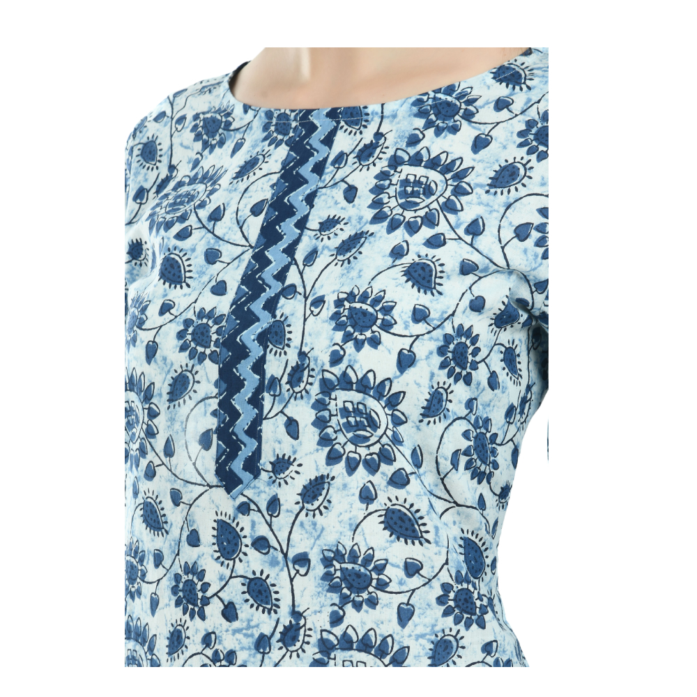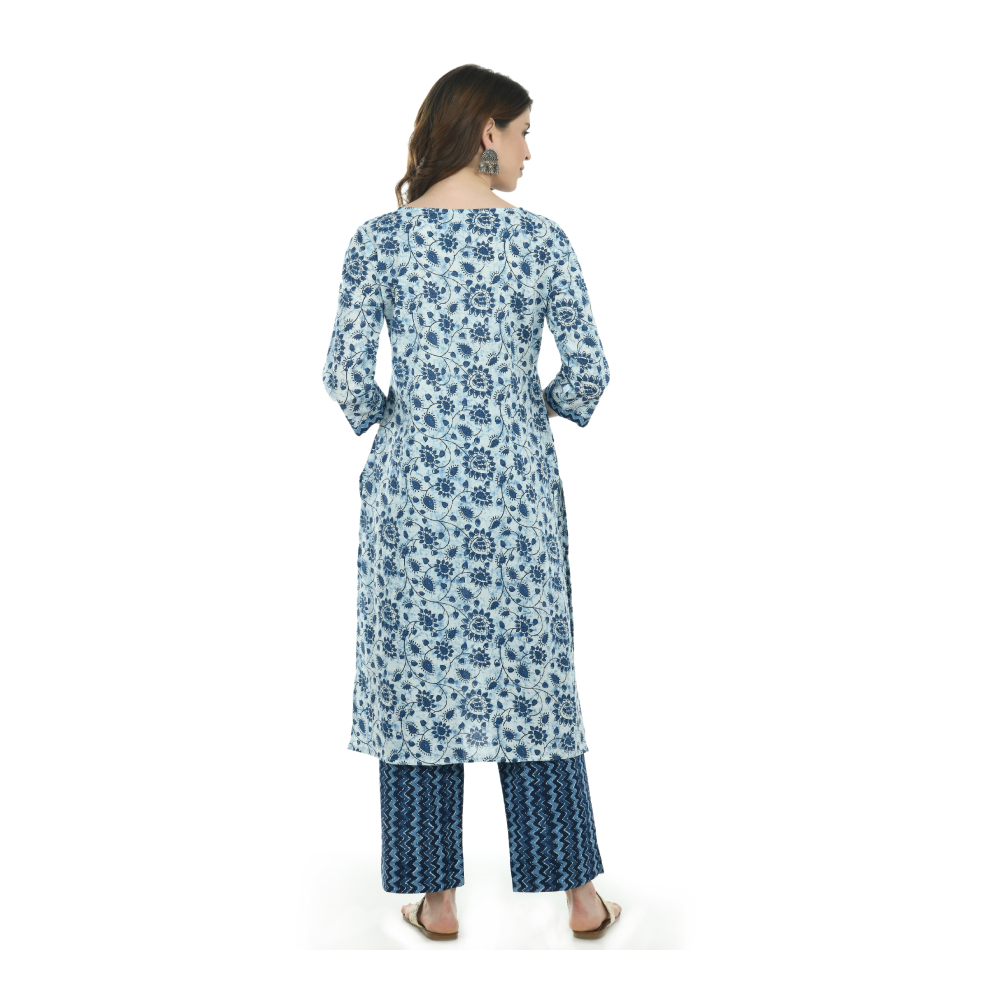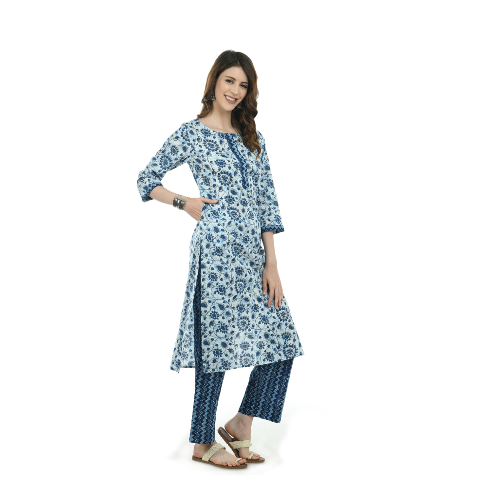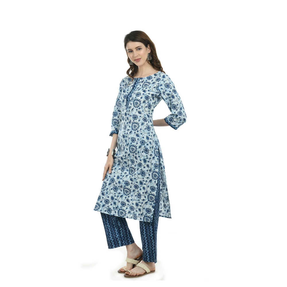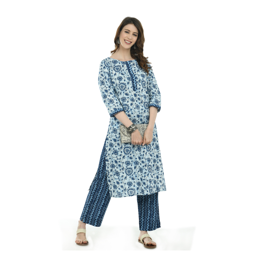 Women Kurta and Pant Set Pure Cotton (Printed Blue)