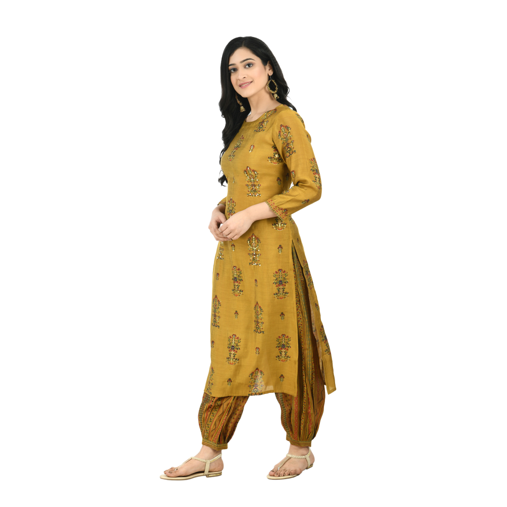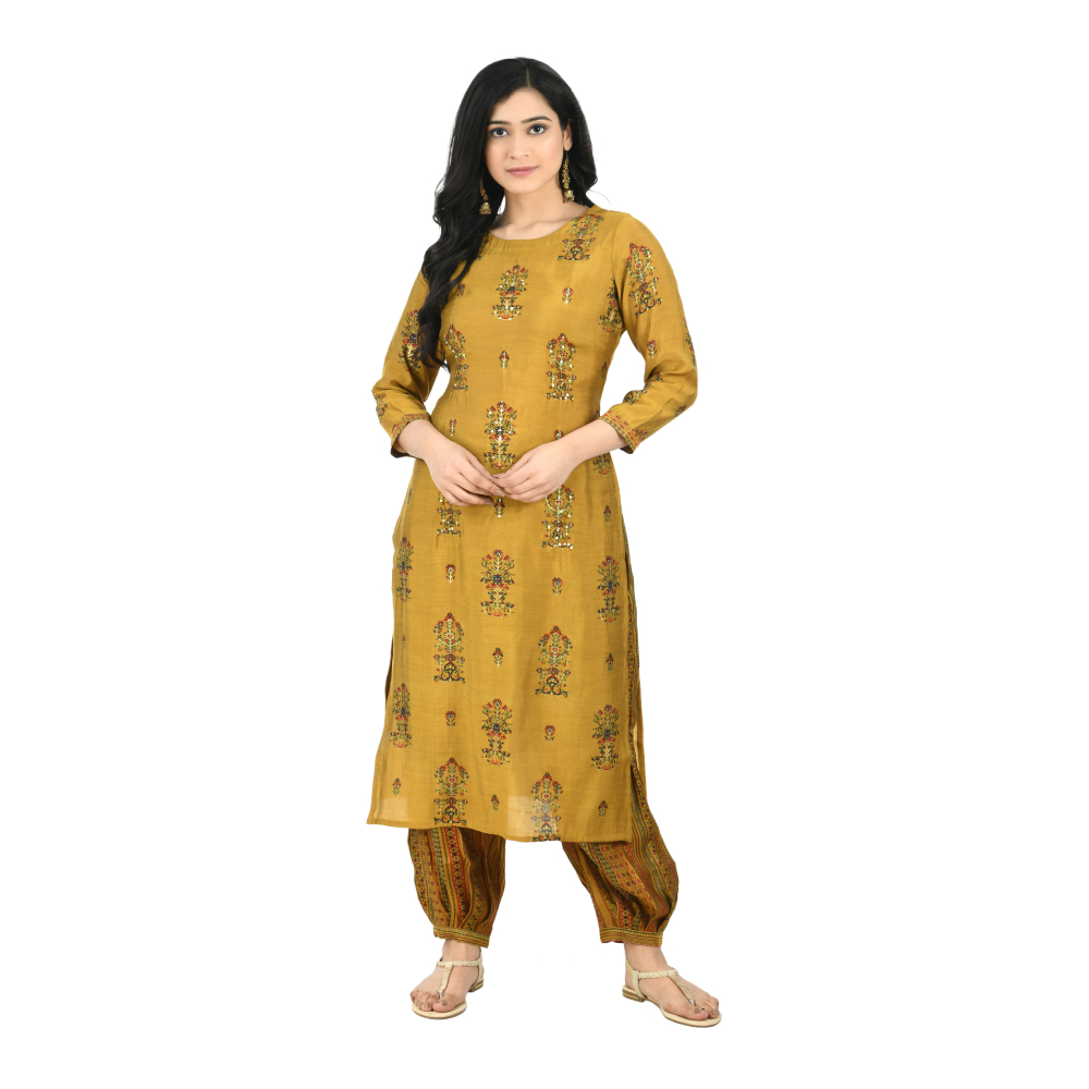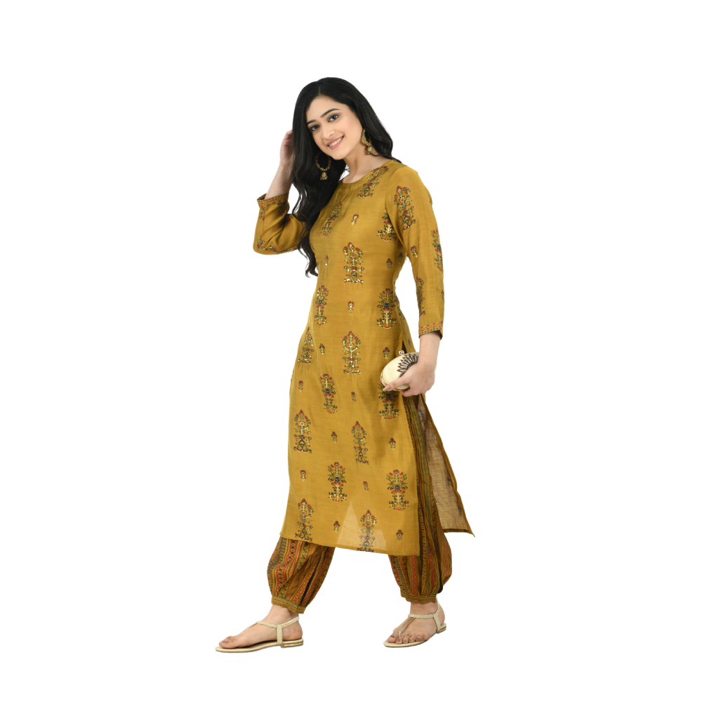 Women Kurta and Salwar Set Pure Cotton (Yellow)