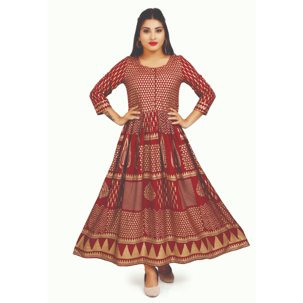 Women Printed Cotton Blend Anarkali Kurta (Maroon)