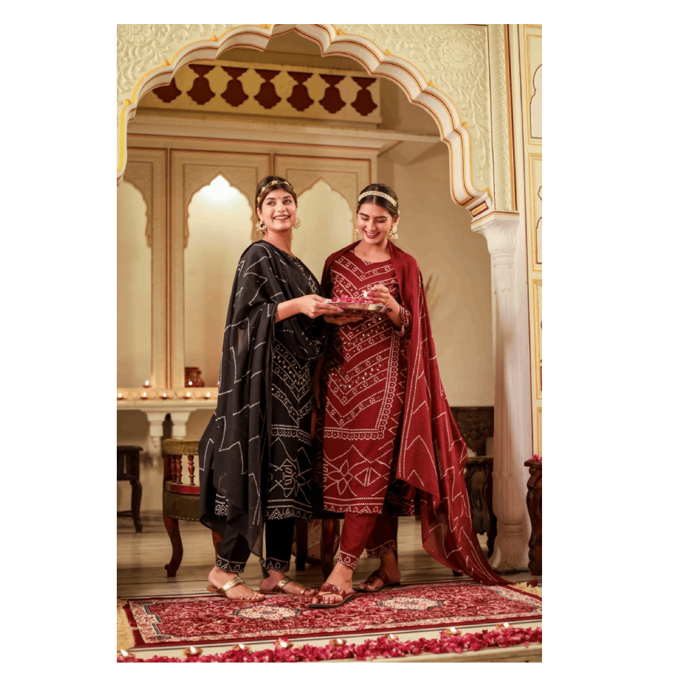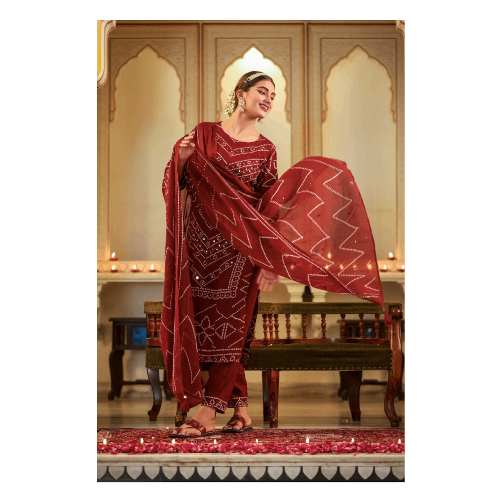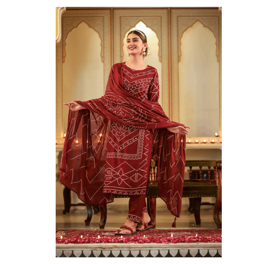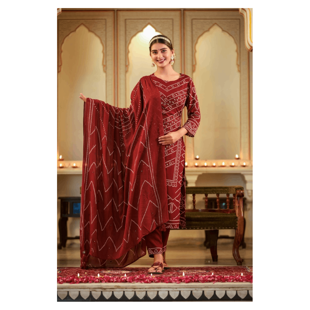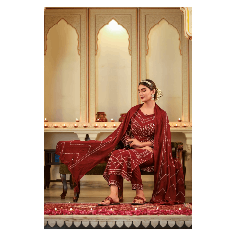 Kurta Pant Set With Dupatta (Mehroon)