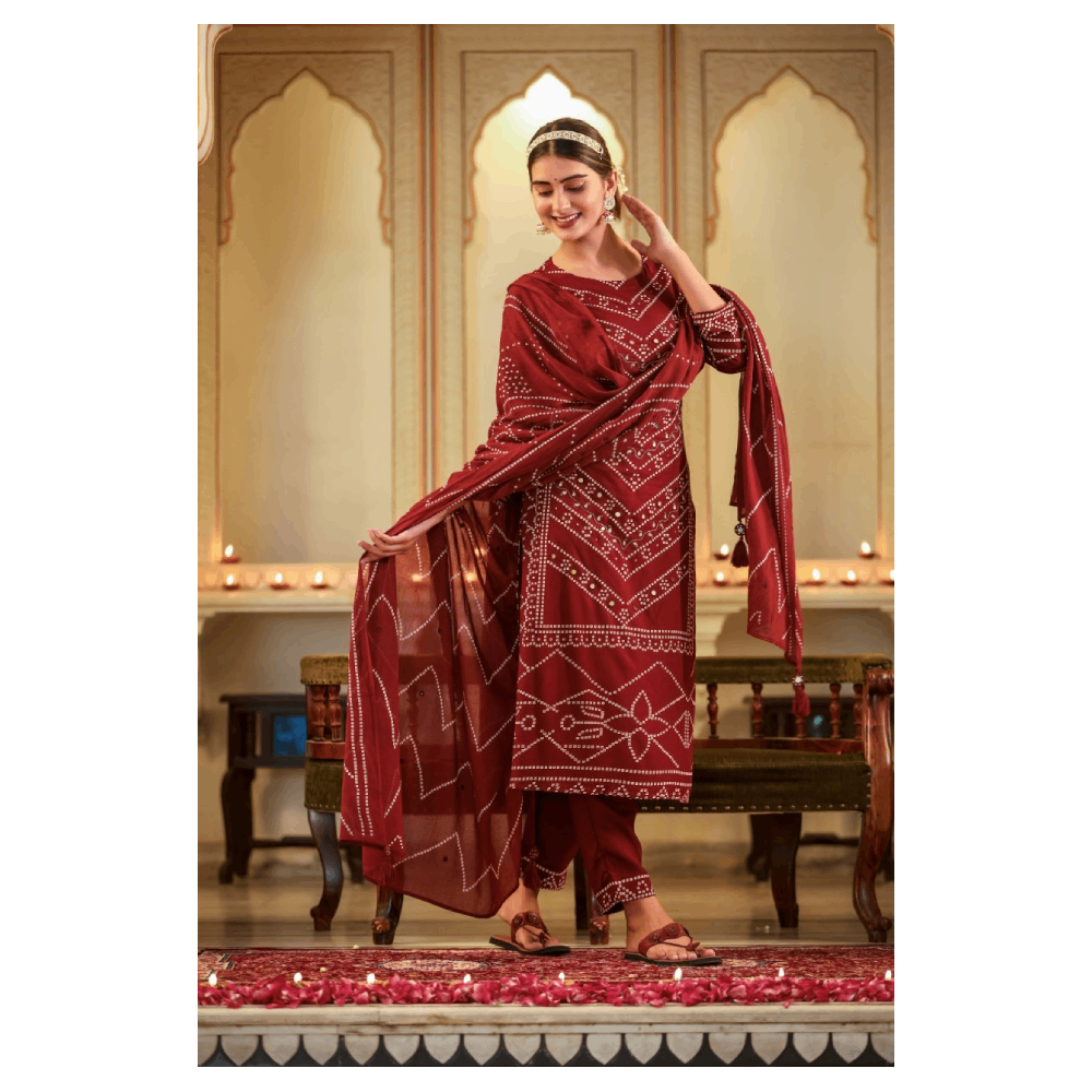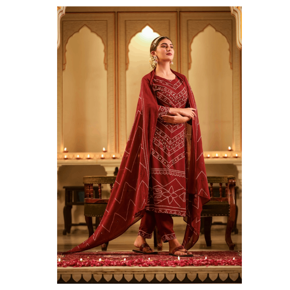 Kurta Pant Set With Dupatta (Maroon)
