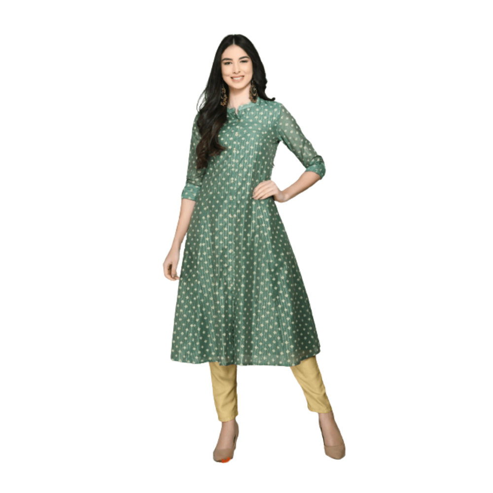 Women Self Design Cotton Blend A-line Kurta (Green)