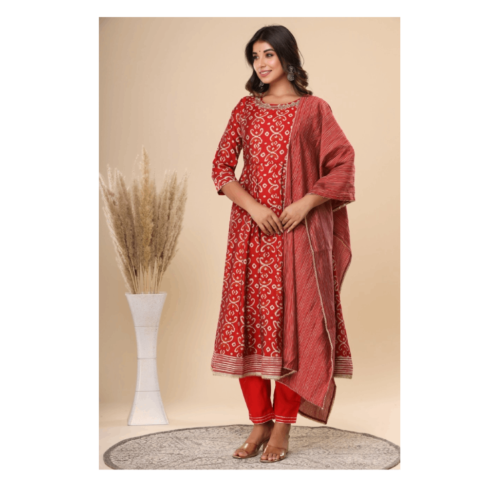 Women White Embroidered Straight Kurta & Pant With Duptta (Red)